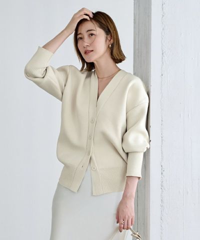 同素材のボトムとセットで着用できるカーディガン。