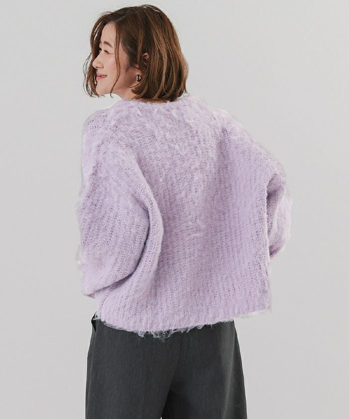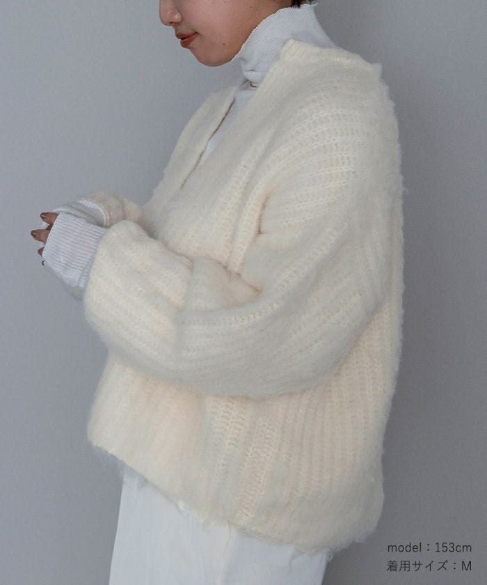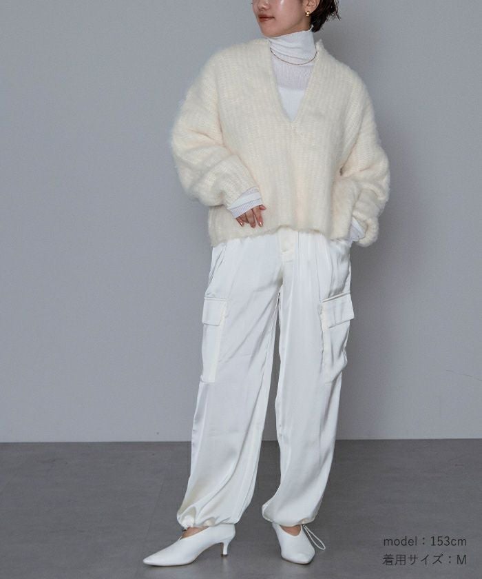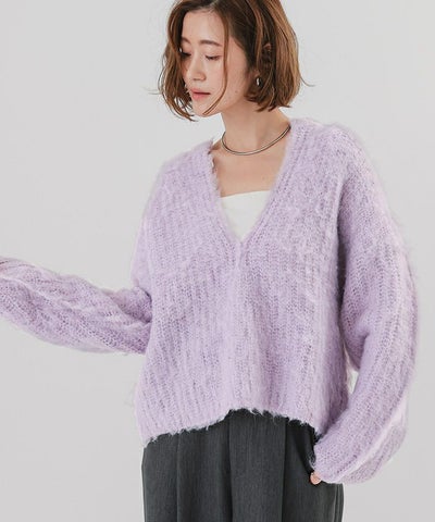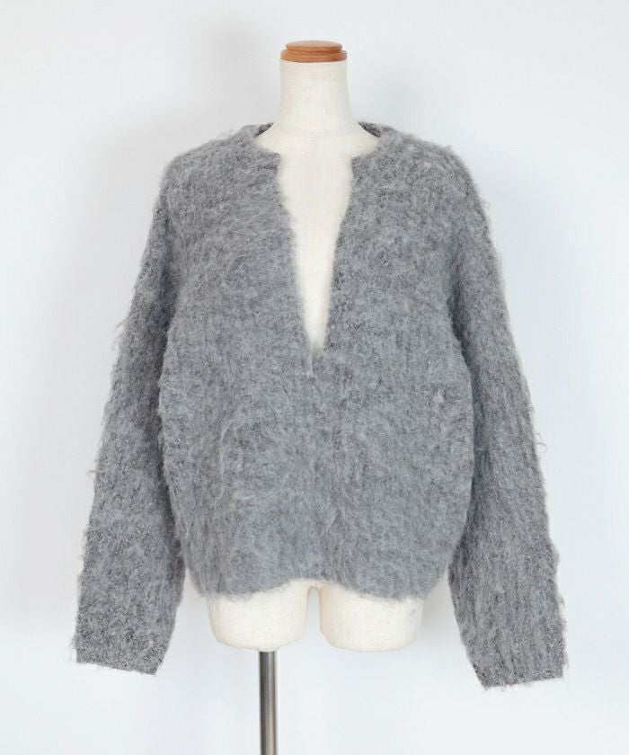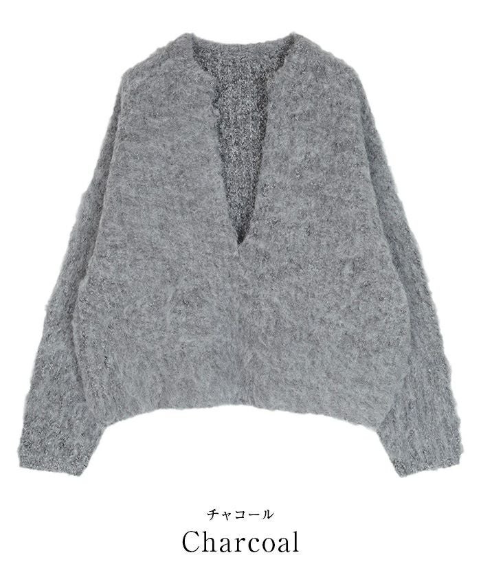 ディープキーネックモヘアライクニット