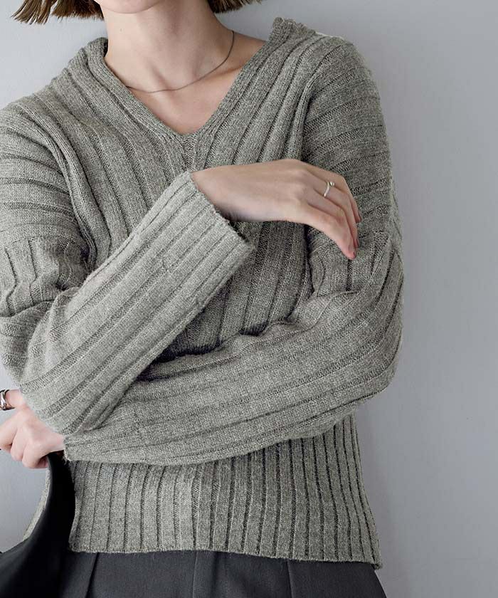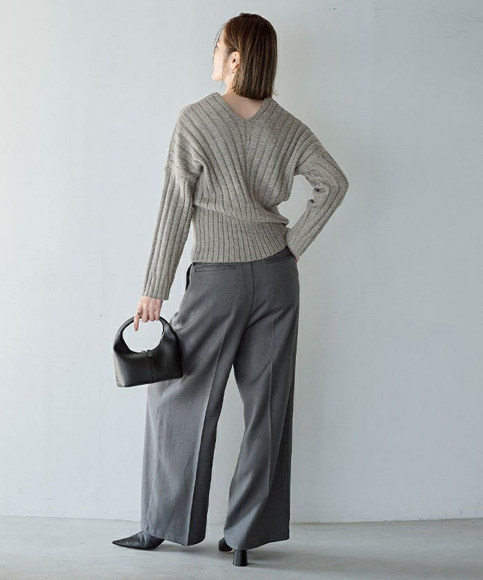 Vネックウエストシェイプワイドリブニット