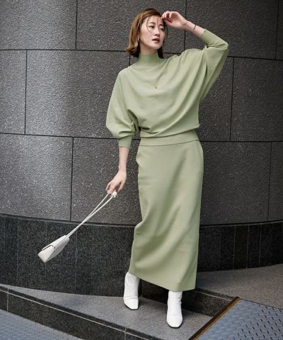同素材のトップスとセットで着用できるニットスカート。