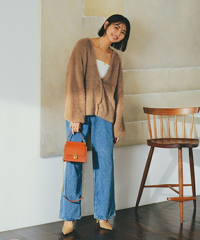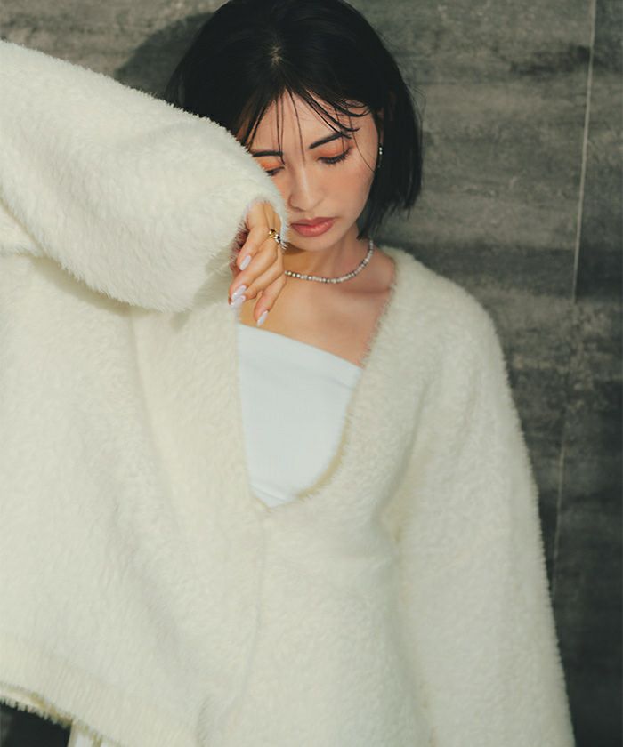 トレンドライクなシャギーニットで触り心地が良くしっかり厚みのあるカーディガン