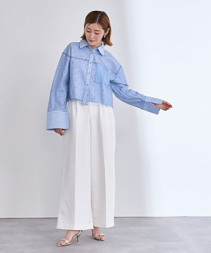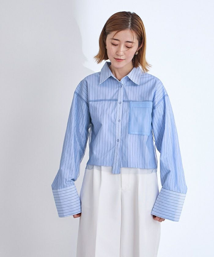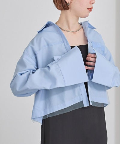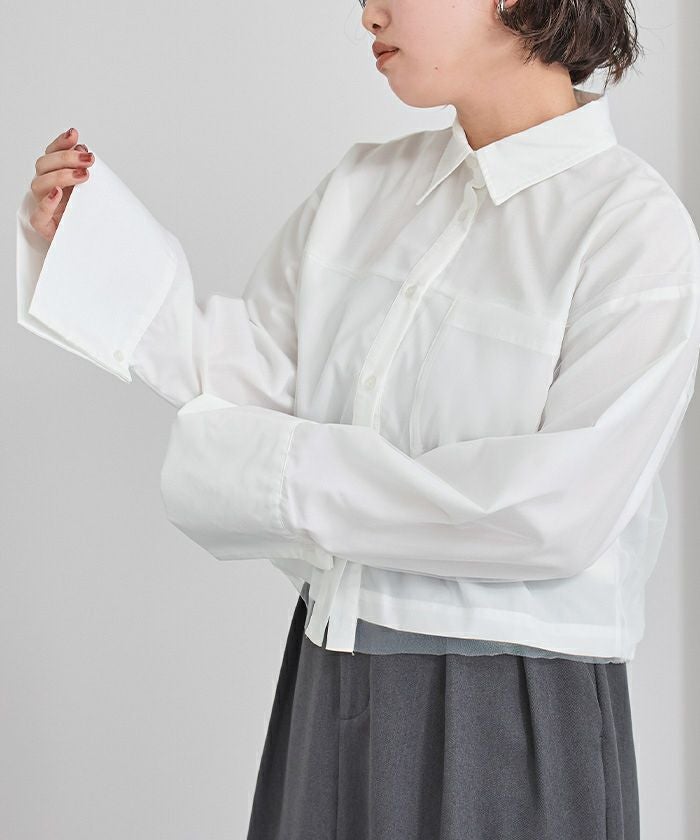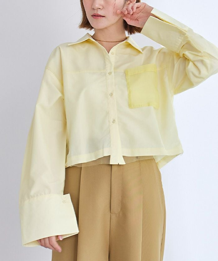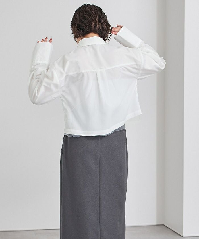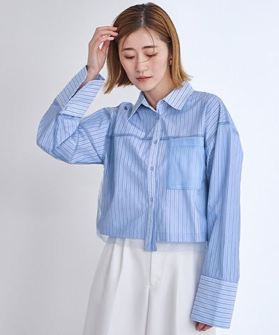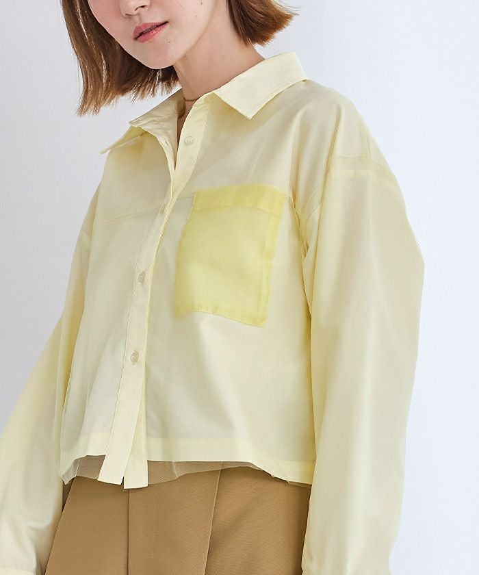 ・ベーシックなクロップドシャツにチュールを重ねた、トレンド感たっぷりな1着。