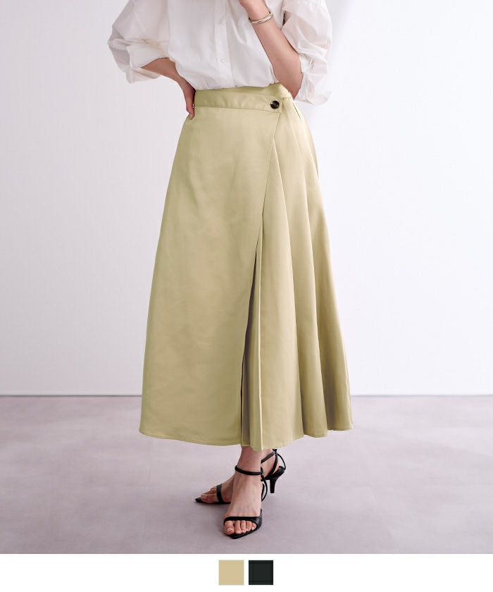 サイドから後ろにかけてプリーツが入ったラップ風のスカート。