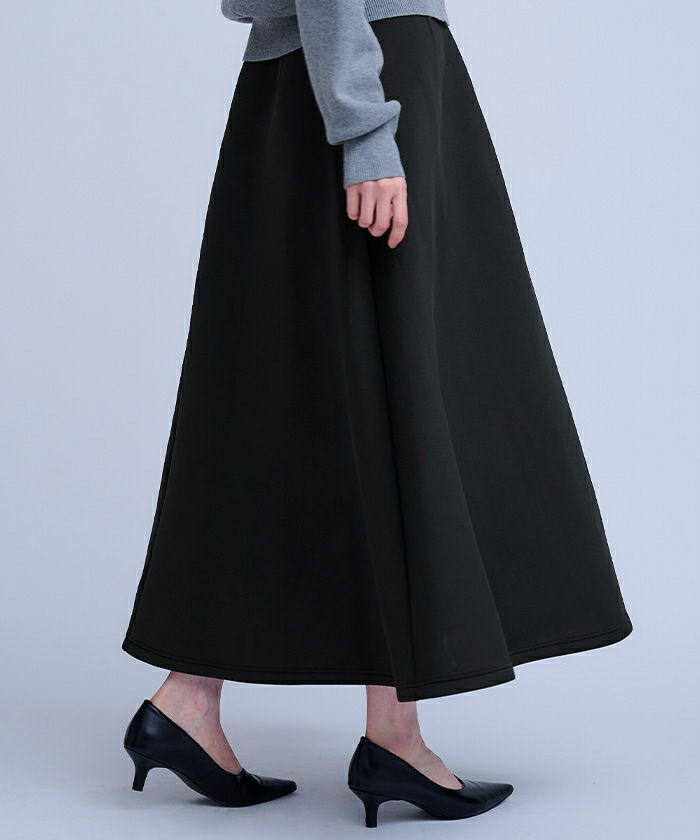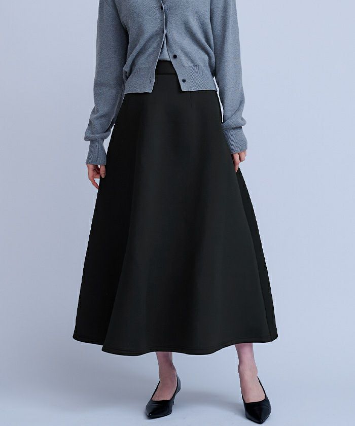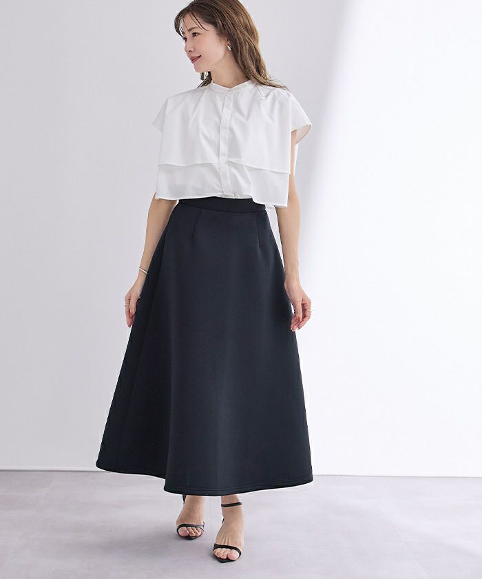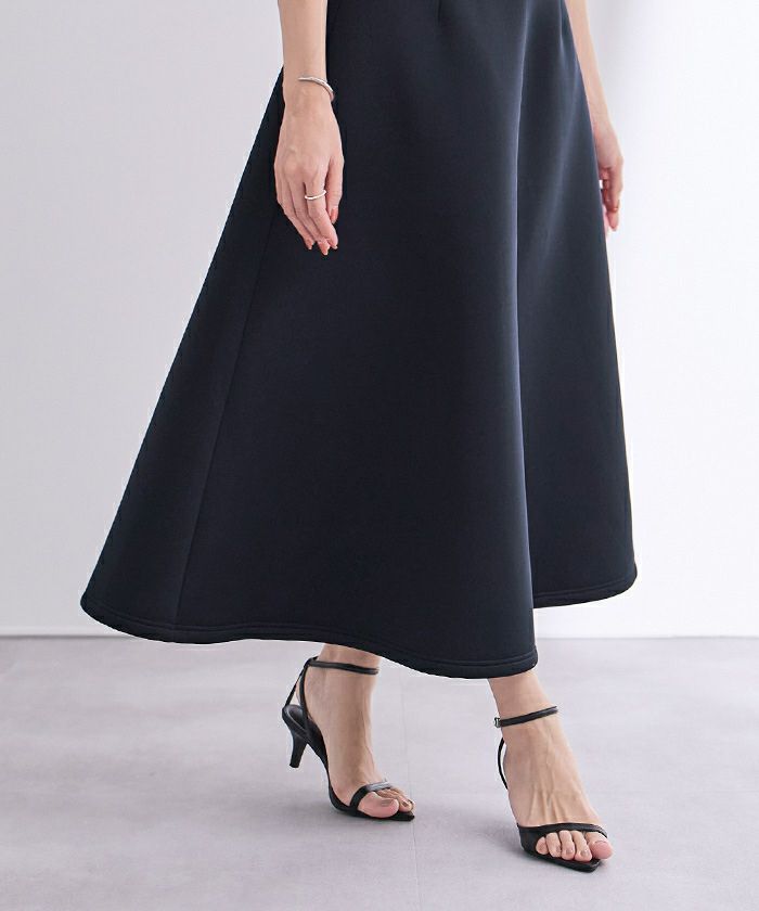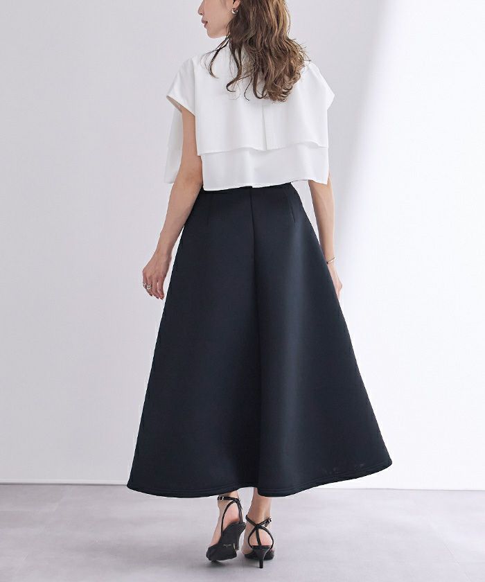ダンボール素材を使用して構築的なフレアシルエットに仕上げました。
