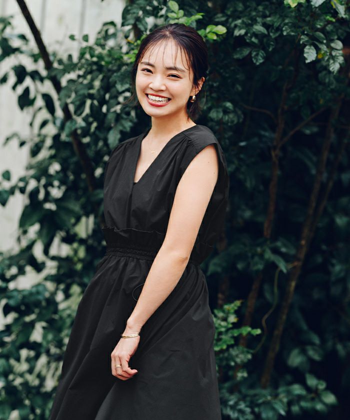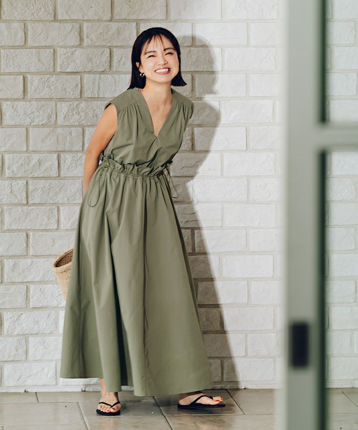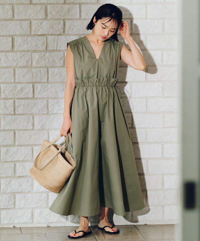 ウエストのフリルデザインがポイントのワンピース。