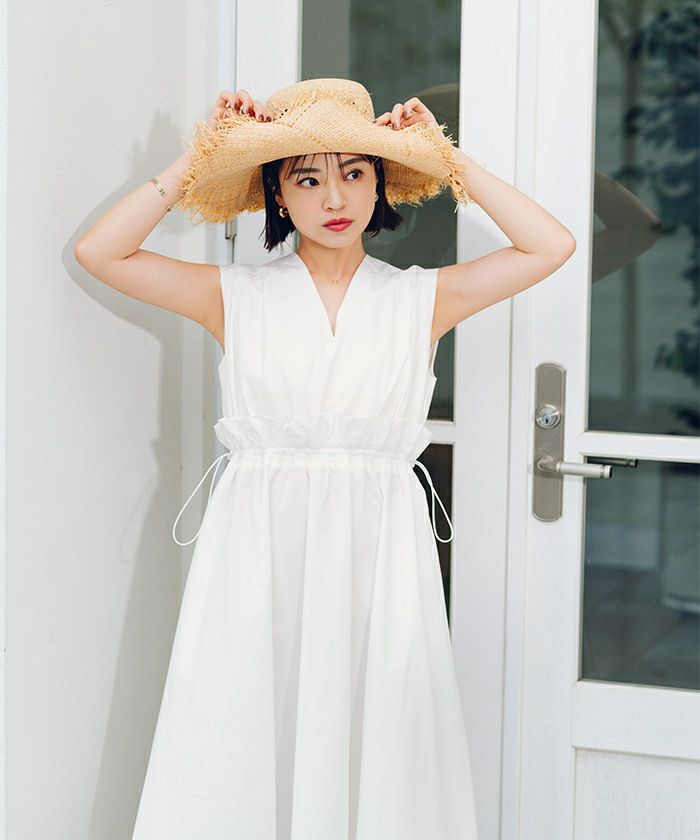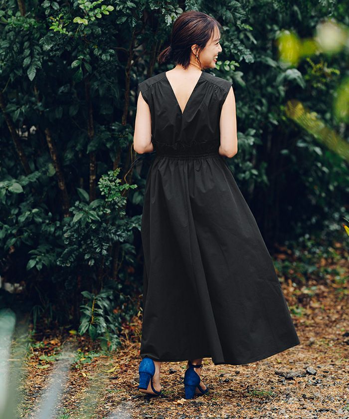 前後2way仕様で顔周りをすっきりと見せてくれる深めのVネックに仕上げました。