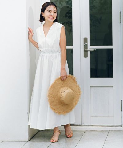 ウエストのフリルデザインがポイントのワンピース。