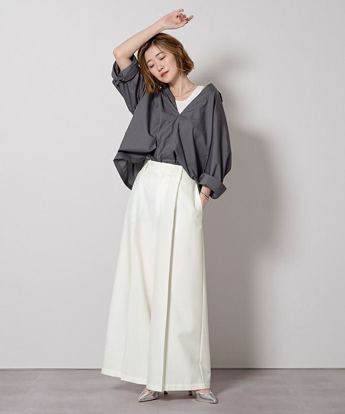 ウエスト部分にタックを施しており、裾にかけて広がるシルエットに仕上げました。