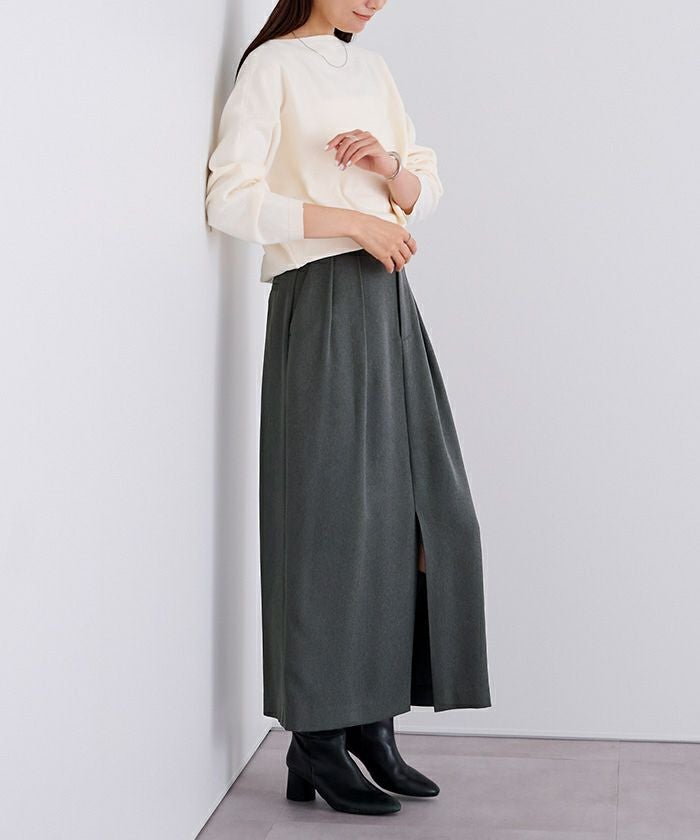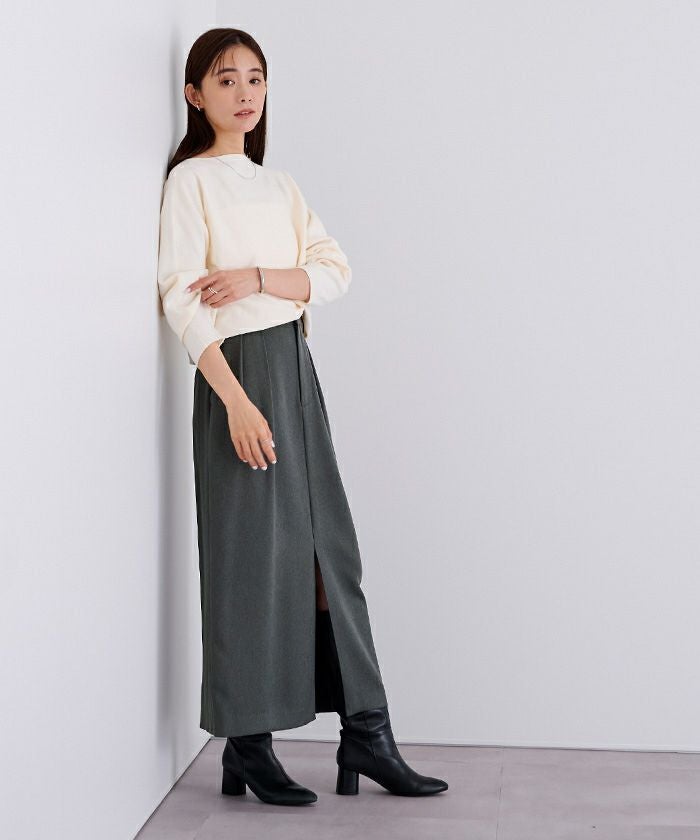ストレートスカートですが、ウエストにタックが入っているので着やすいサイズ感に仕上げました。