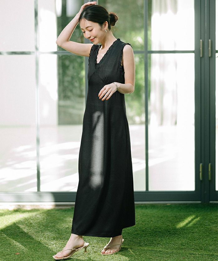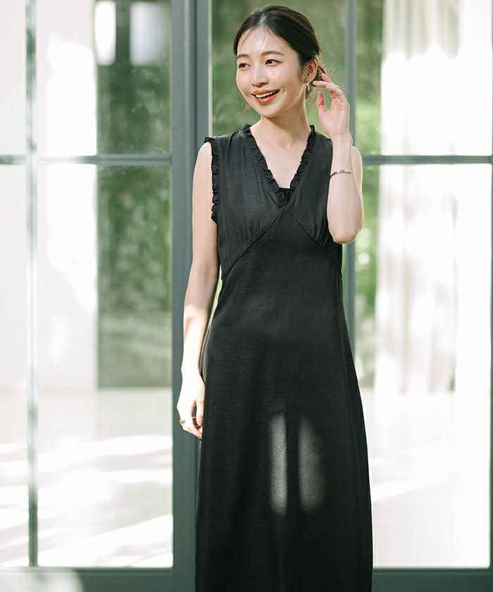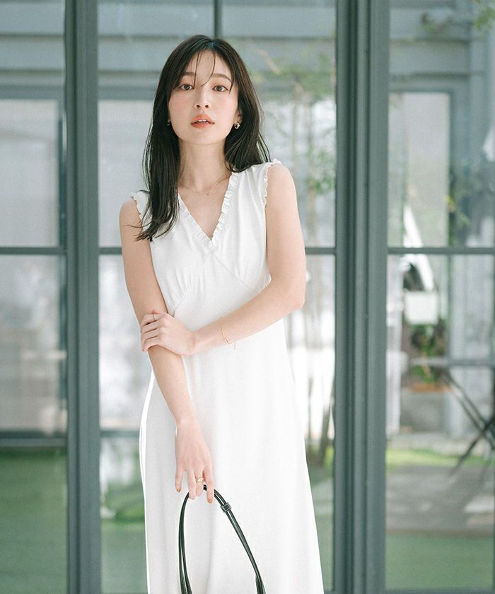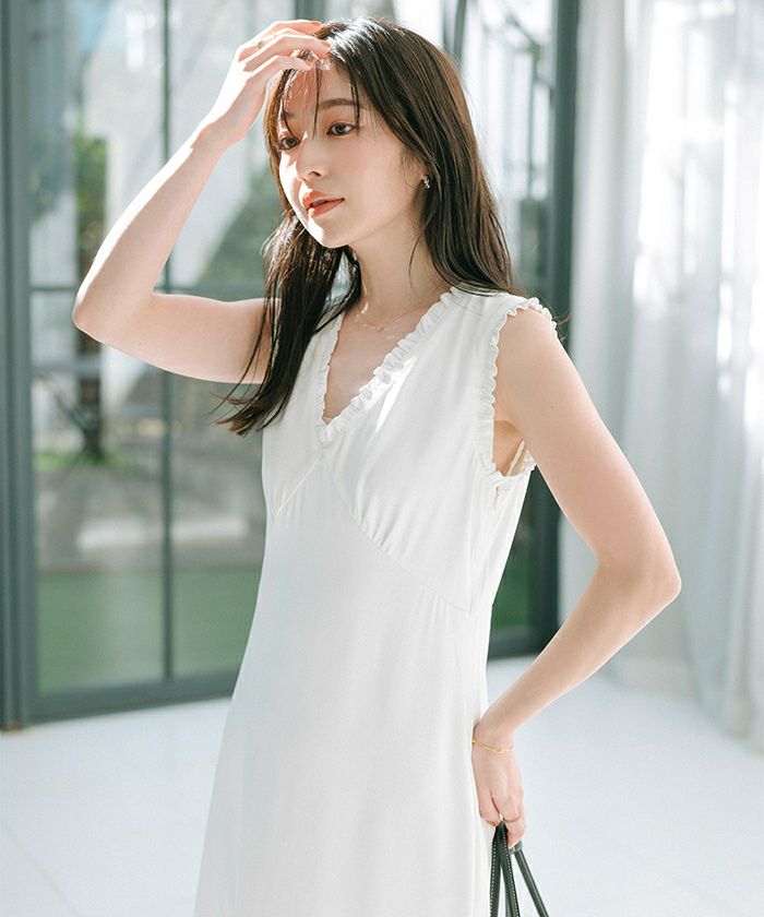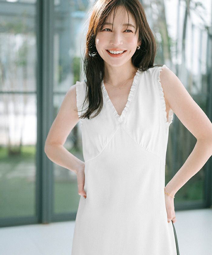 フリルデザインがポイントのワンピース。