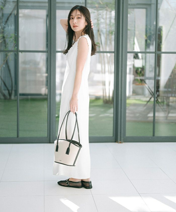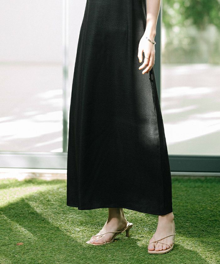 ウエストシェイプしつつ裾に向けてフレアになるフィットアンドフレアシルエットに。