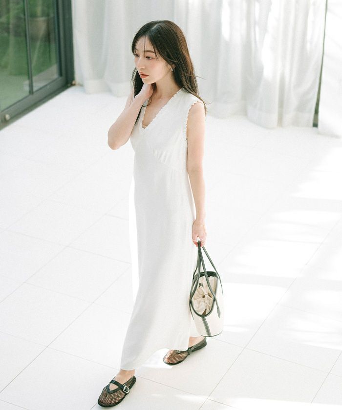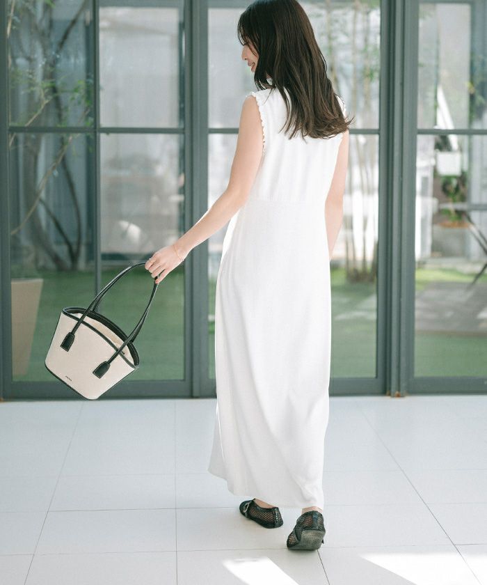 夏らしいデコルテ見えのVネックに涼し気なノースリーブに仕上げました。