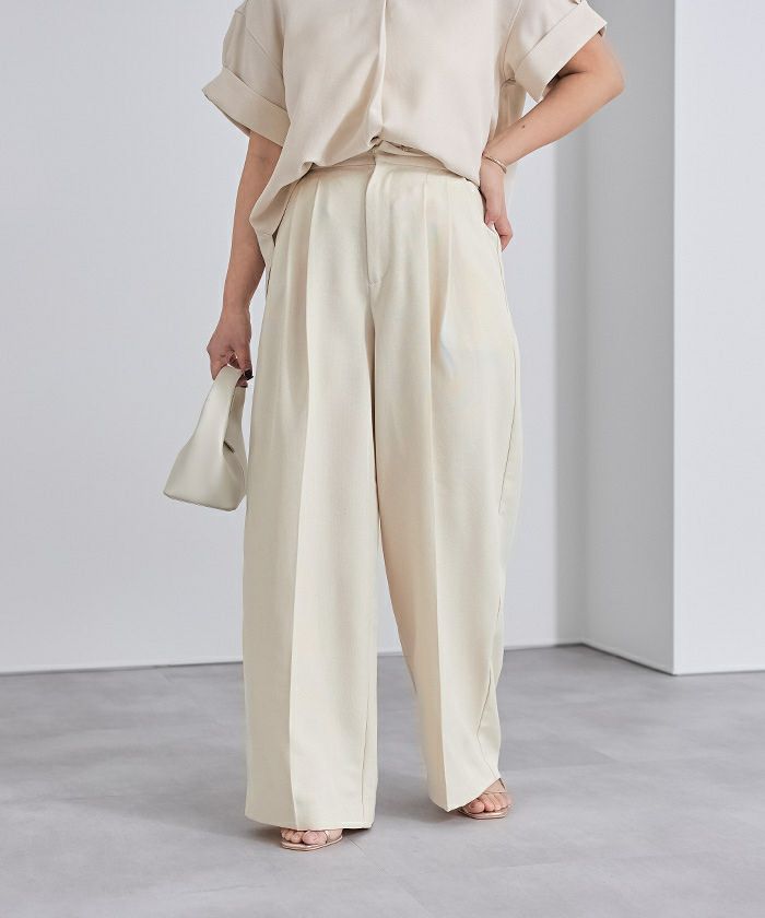 ウエストにタックが入っているゆったりしたワイドパンツになります。