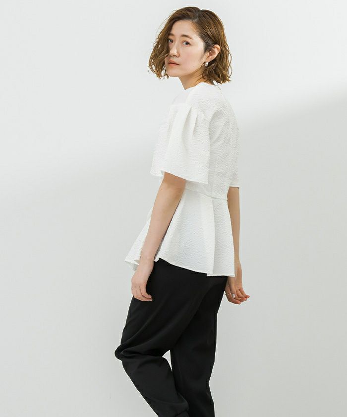 1枚でコーディネートが華やかになるふくれジャガードトップス。