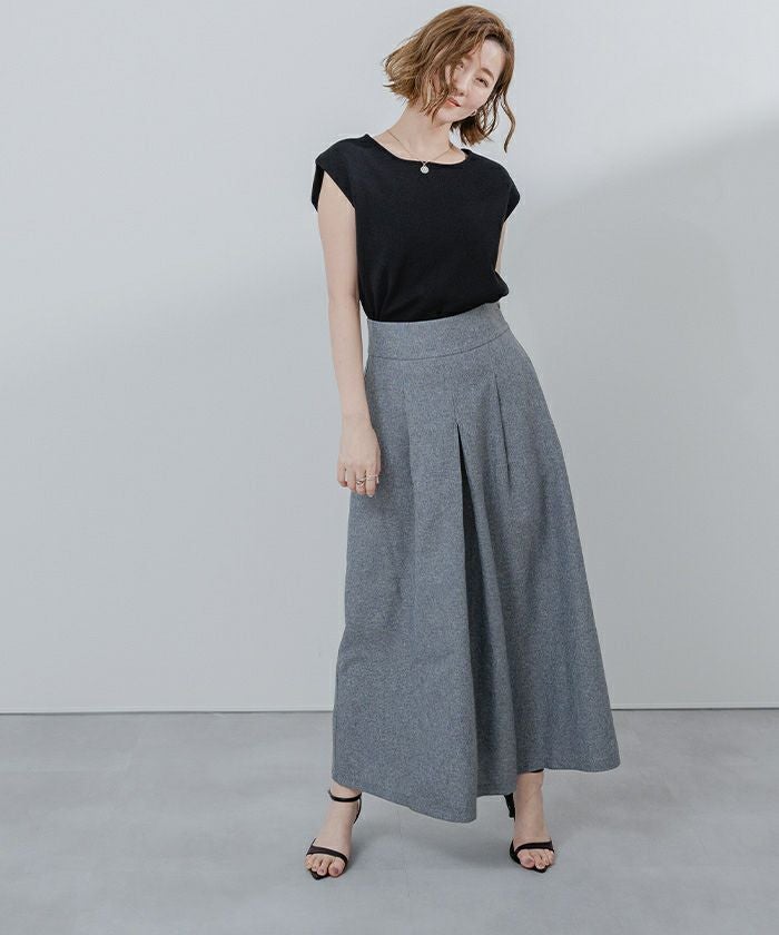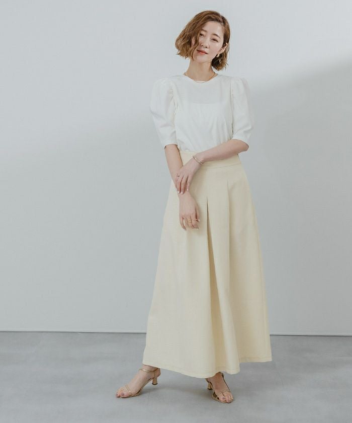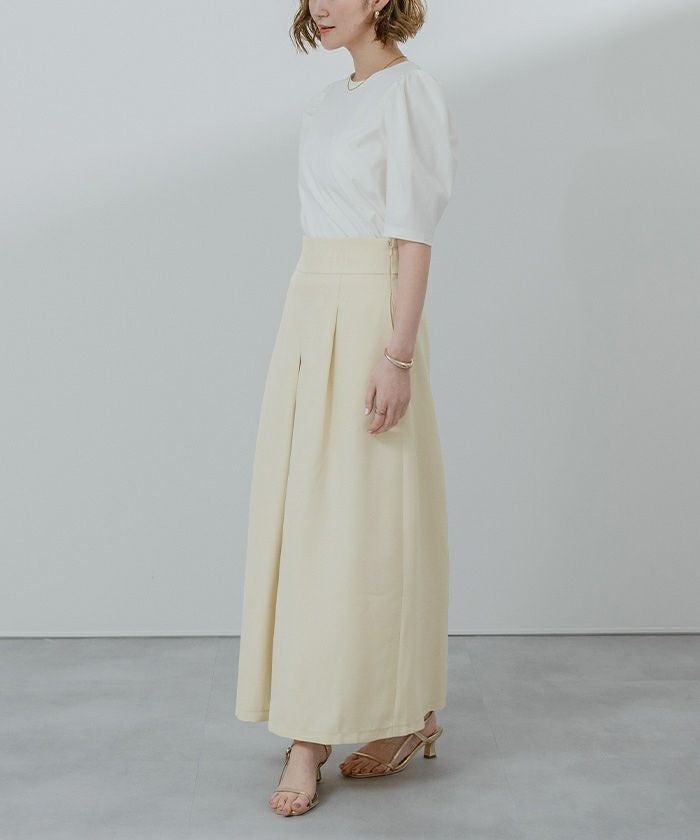 後ウエストにはシャーリングが入っているのでハイウエストでも楽に着用できます。