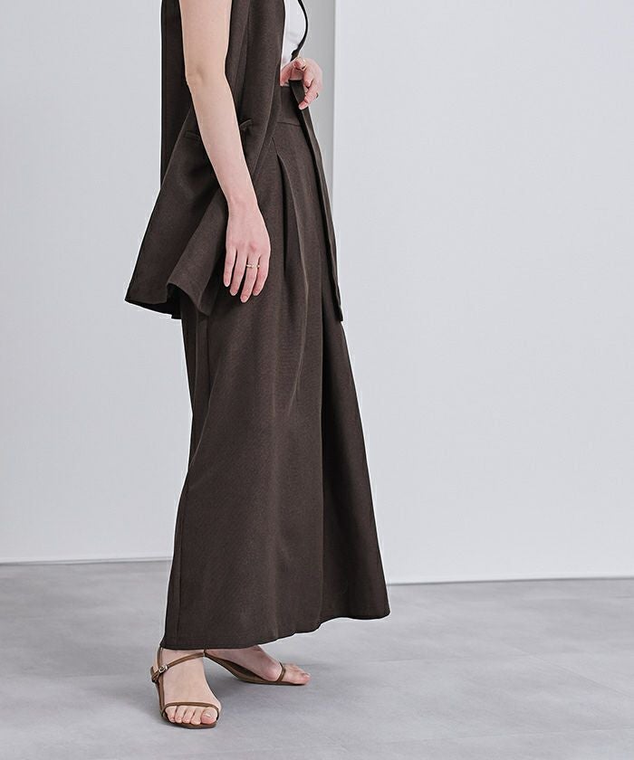 163センチ47キロMサイズ…ダークブラウン ハイウェストなので、脚長効果がありスタイルが凄くキレイに見えます。ダークブラウンは高級感がある色合いです。同じシリーズのジャケットと一緒に購入したので、肌寒くなってからセットアップで着るのが楽しみです。