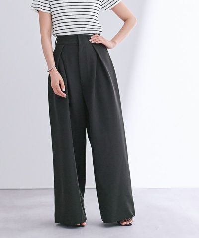 たっぷりとタックが入っているのでゆったりしたシルエットで履けますが、ハイウエストなのでスタイルアップが叶います。