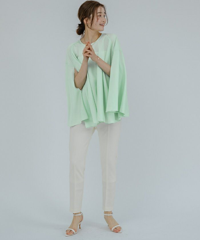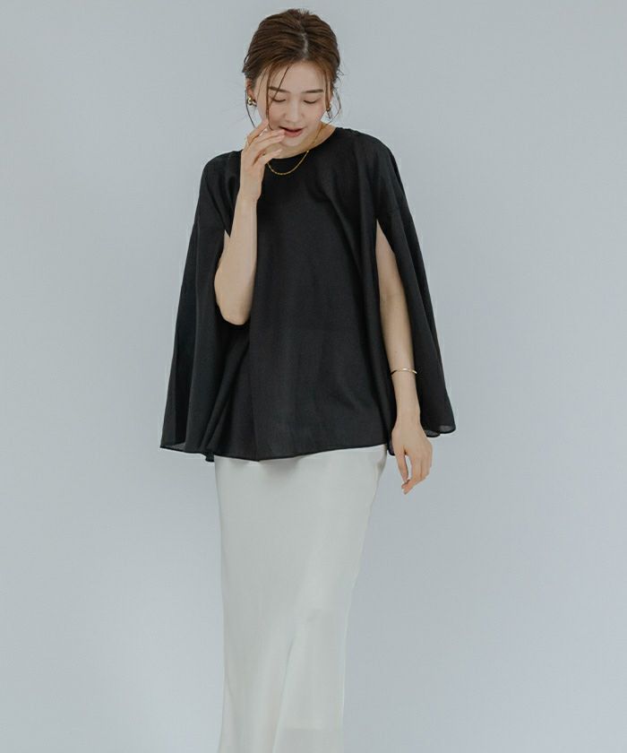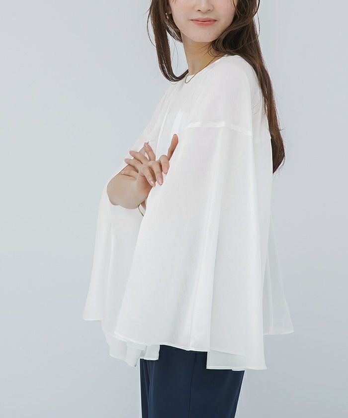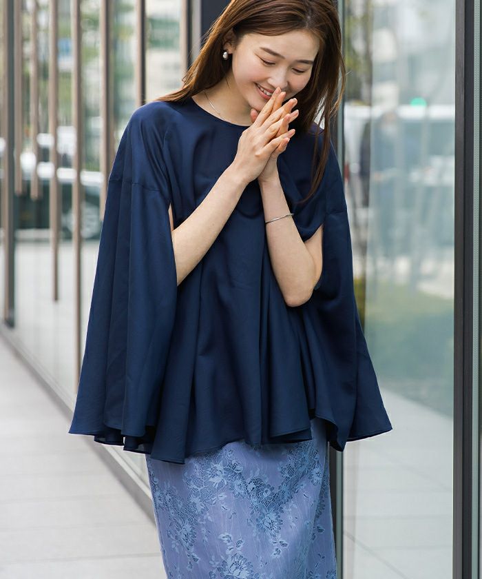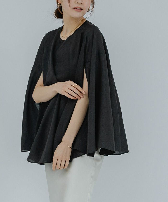 女性らしい上品さを演出してくれるケープブラウス。