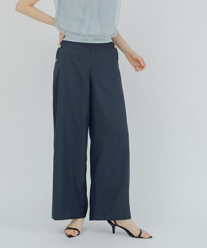 程よいゆとり感があるゴールド釦がアクセントのマリンワイドパンツ。