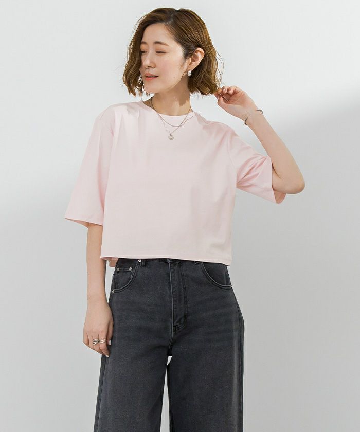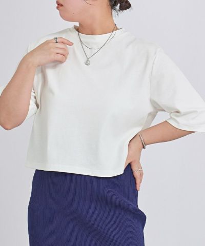 汗染みが軽減できる素材の大人のクロップドTシャツ。