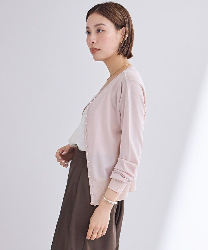 小さめのパールが上品なUVケアニットカーディガン。