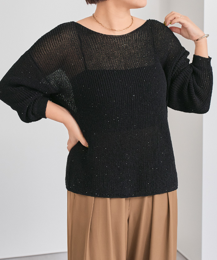 スパンコールオーバーサイズシアーニット