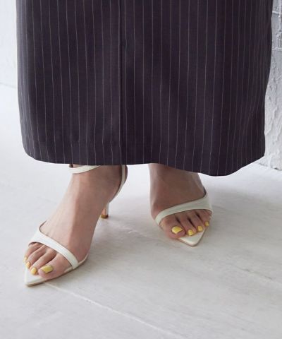 甲バンドがアシンメトリーのエッジの効いたデザインサンダル。