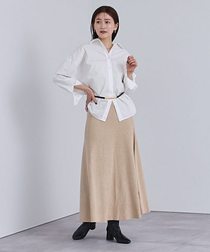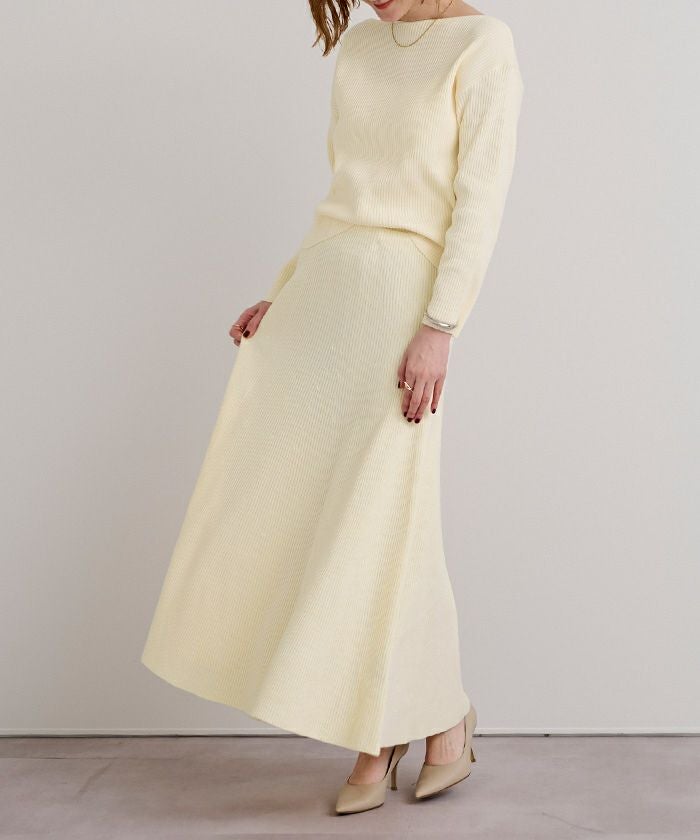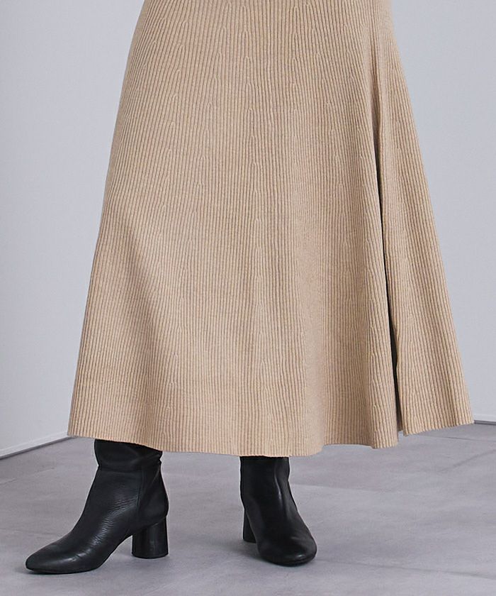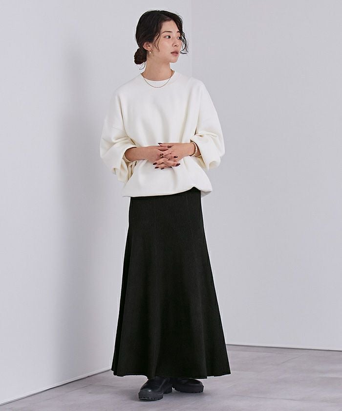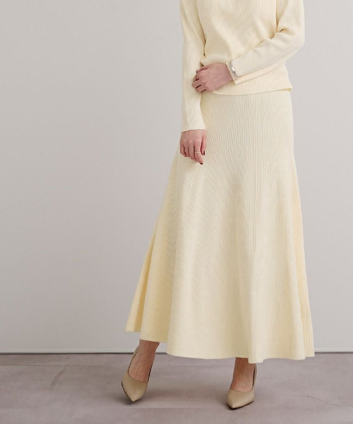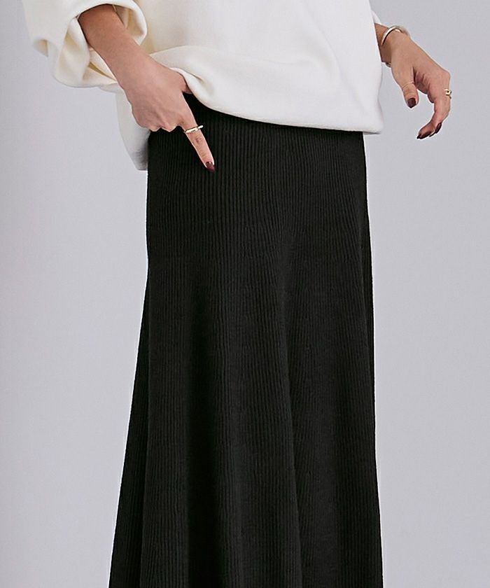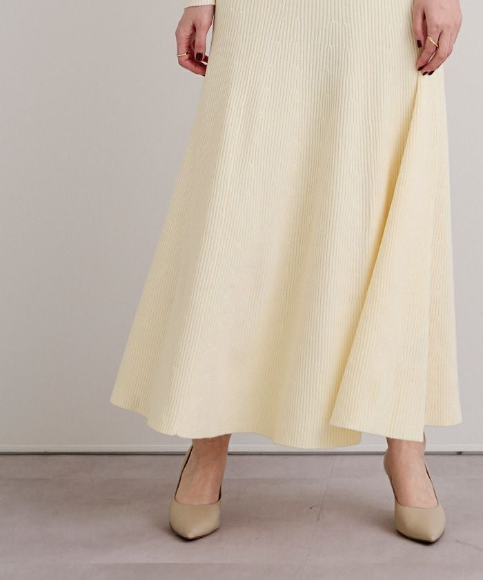 セットアップで購入しました。生地はたっぷりしているのに広がりすぎず、スタイルアップして見えます。フレア感が華やかで、着ていてテンションが上がります。しっかりしたリブで毛玉もできないし、透けないので安心して履けます。セットアップ合わせが一番可愛いですが、単品使いも出来て良いです。