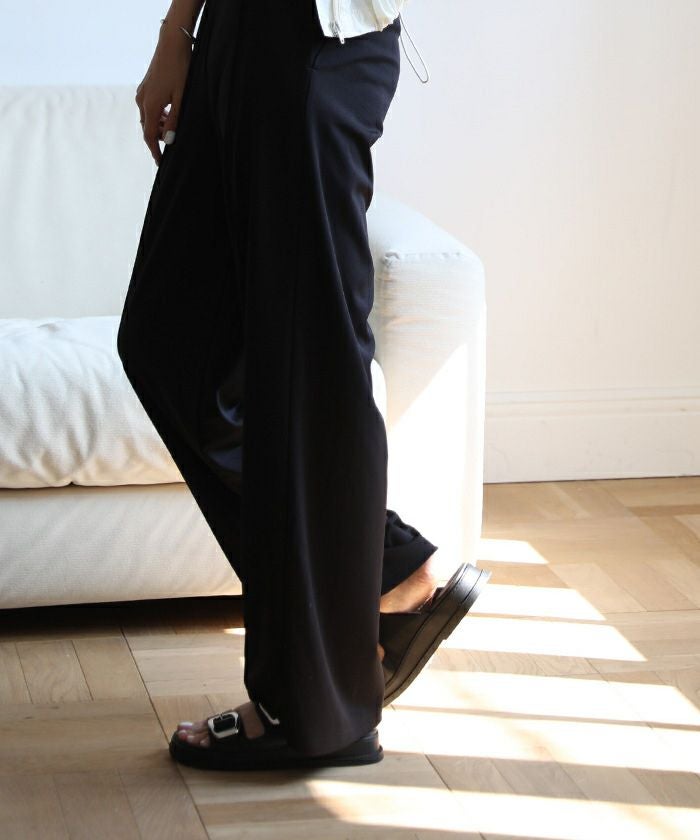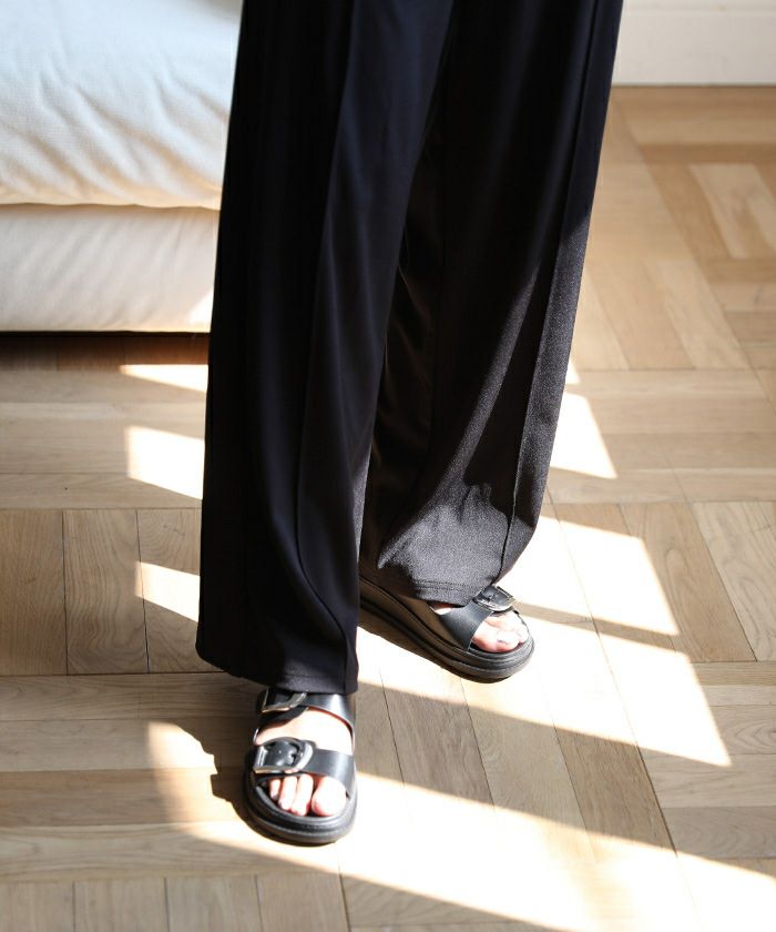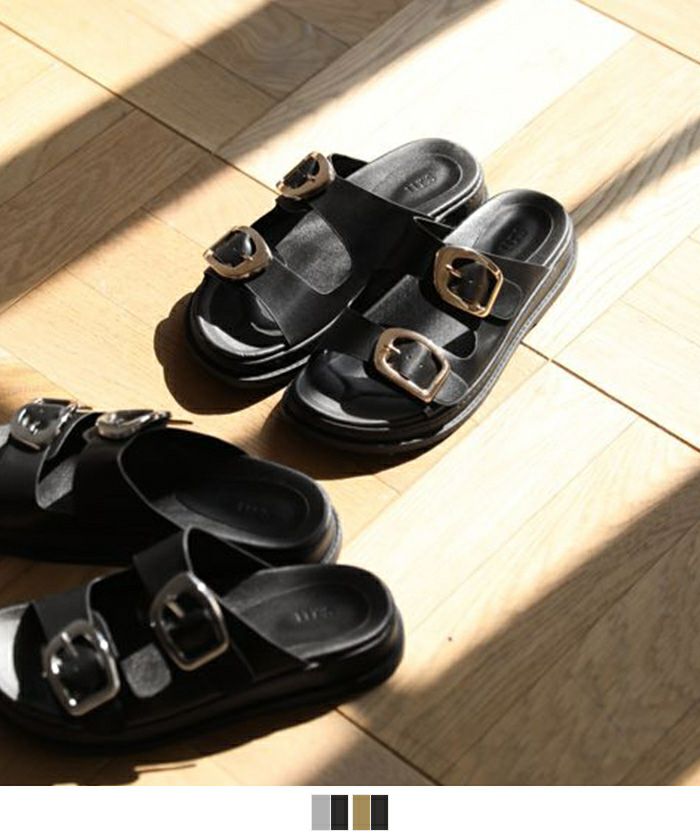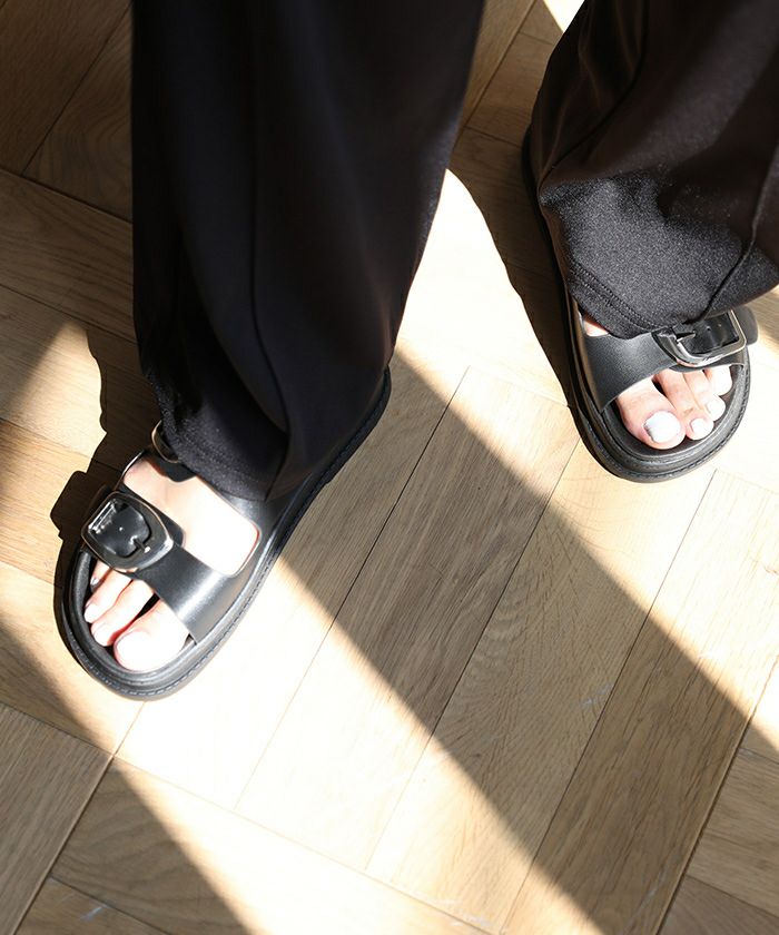 装いにアクセントをもたらすメタルバックルフラットサンダル