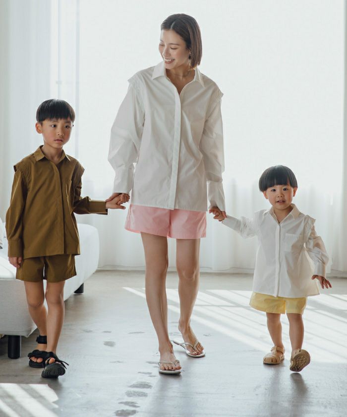 大人用のショートパンツとお揃いコーデができるキッズショートパンツ。