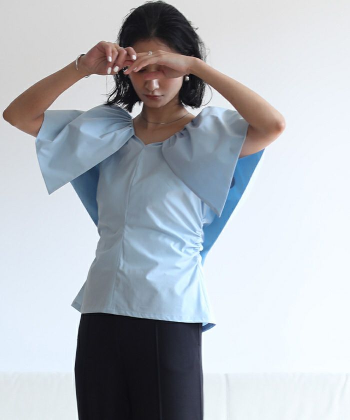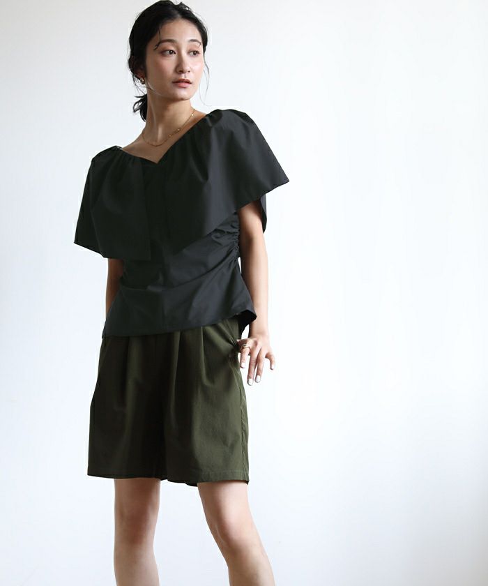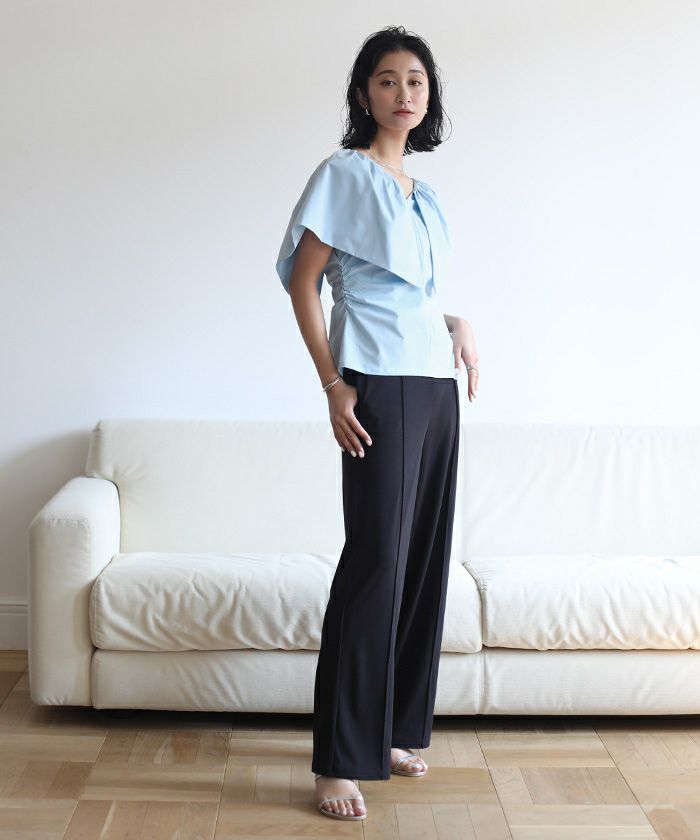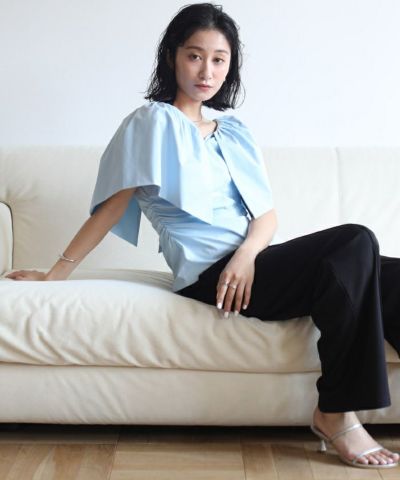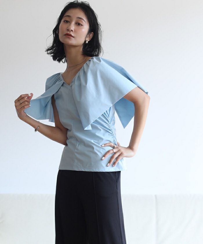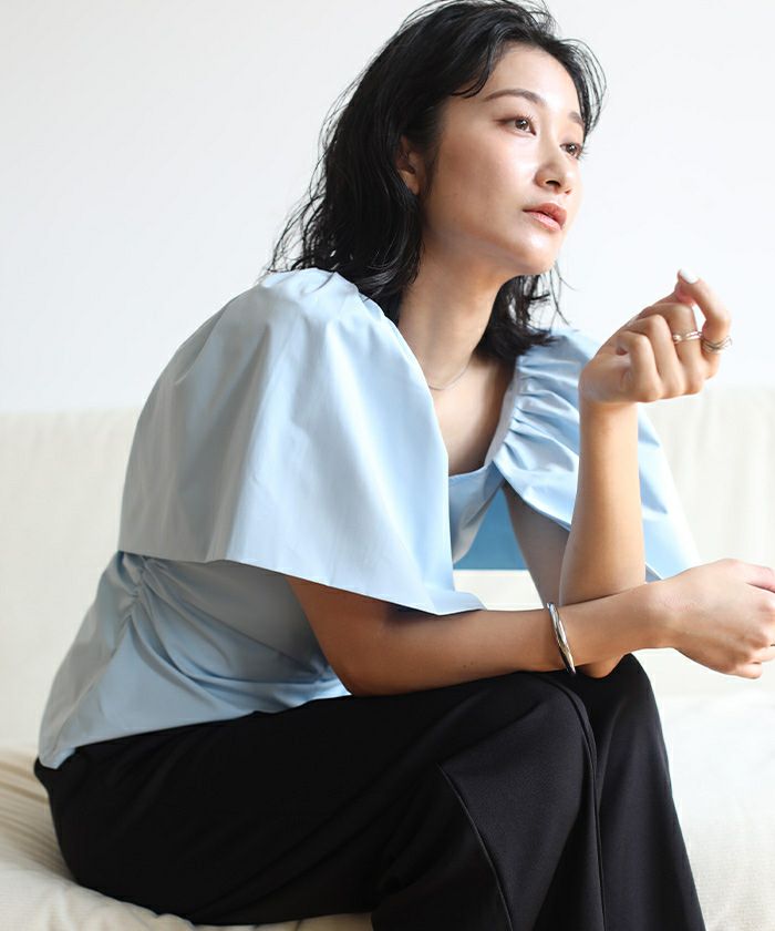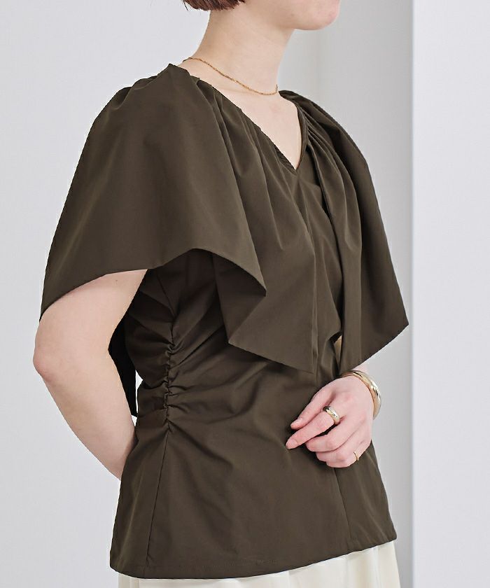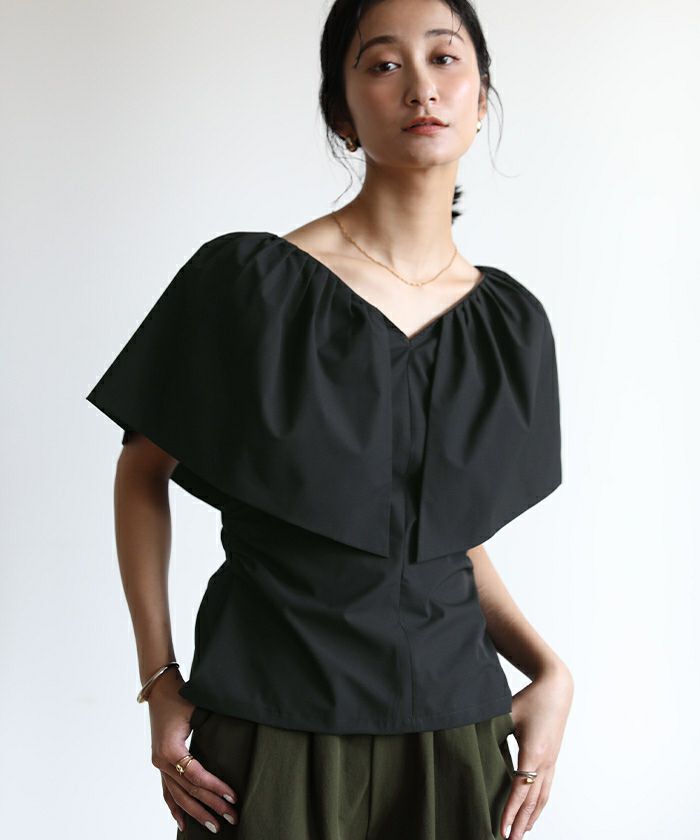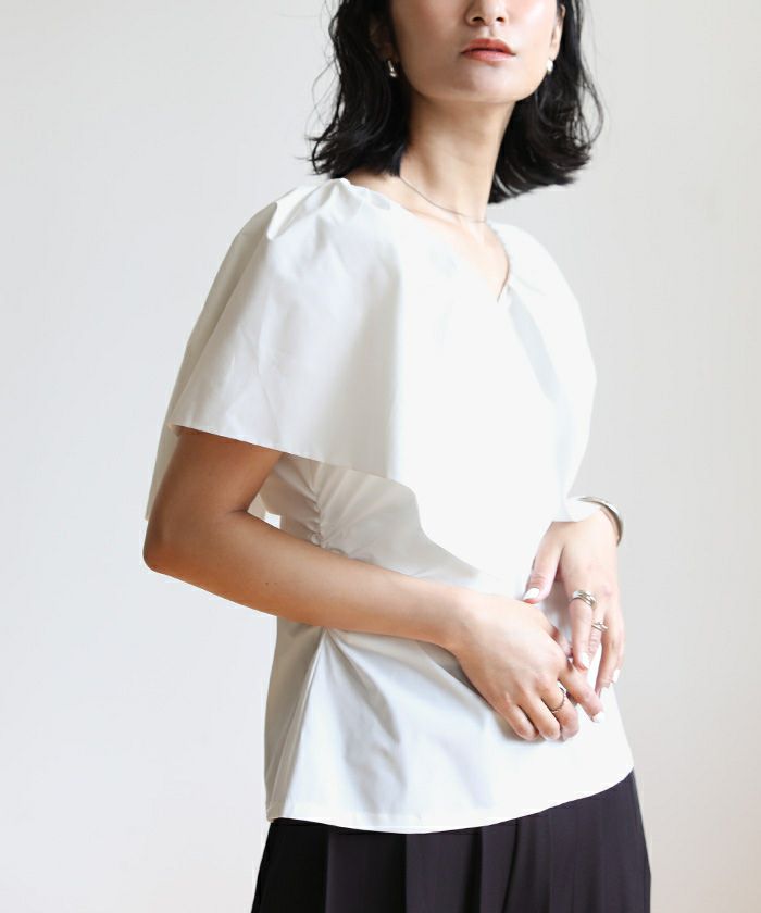タックの入ったケープのデザインで、1枚で華やかになります。