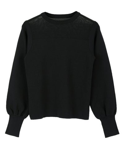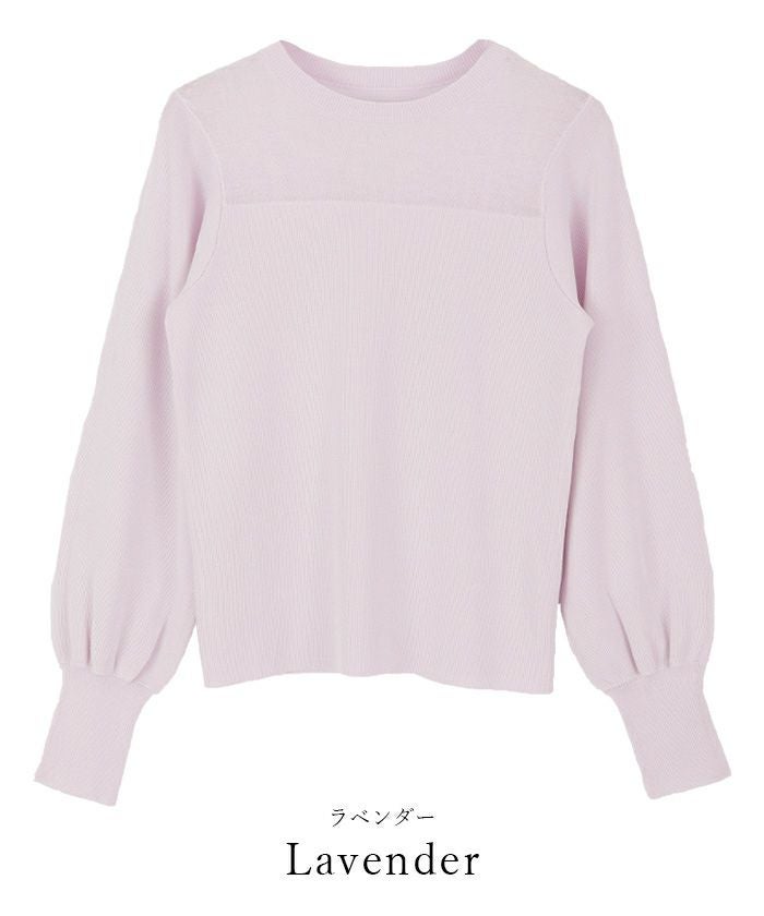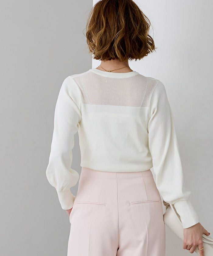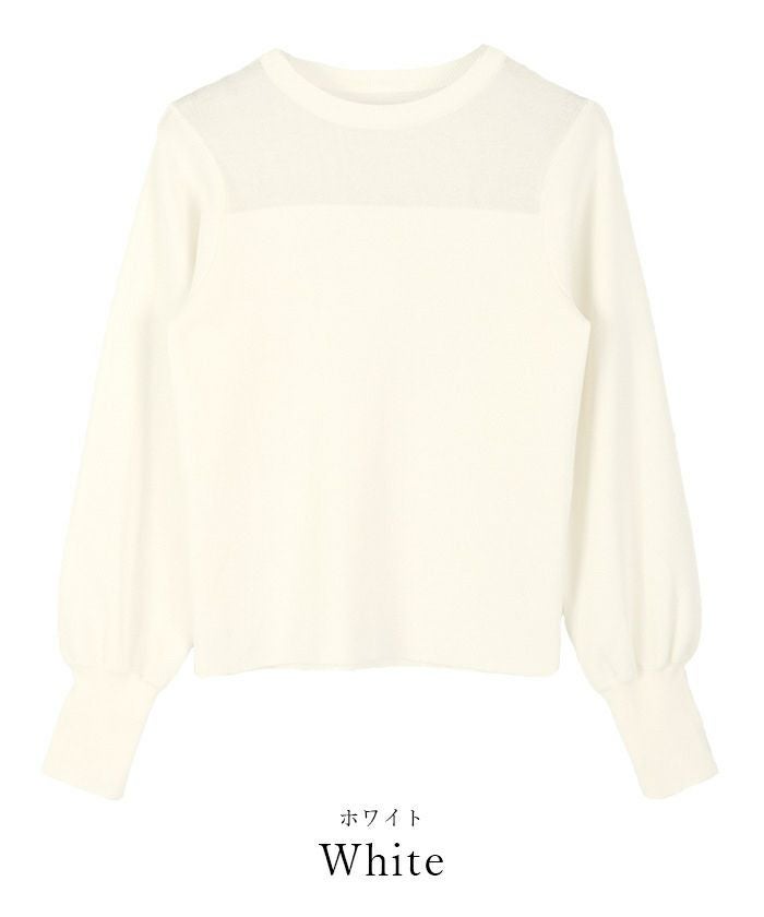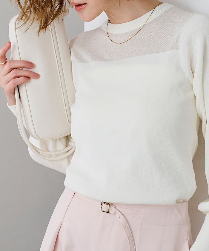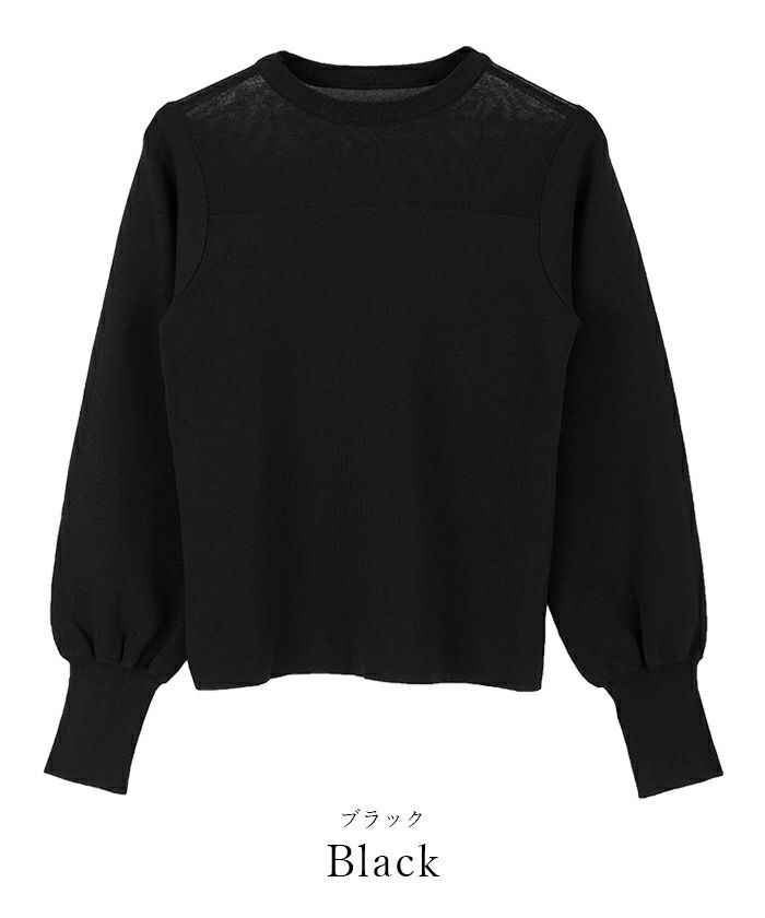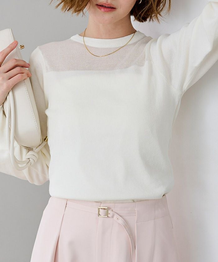 全色:胸上と背中のシアー部分にあり 淡色:ニット部分に多少あり
