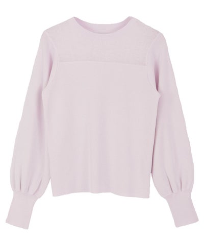 トレンドを取り入れつつお袖と胸元はしっかりとした編みで仕上げてます。