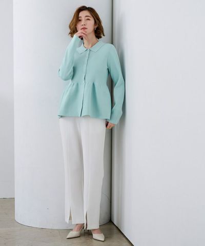ウエストペプラムポロニットカーディガン