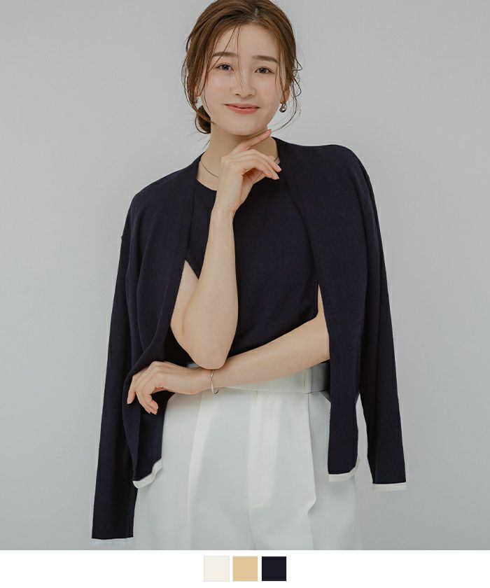 肩掛け風に着る場合は袖を抜いて着用と2パターンのスタイリングをお楽しみ頂けます。