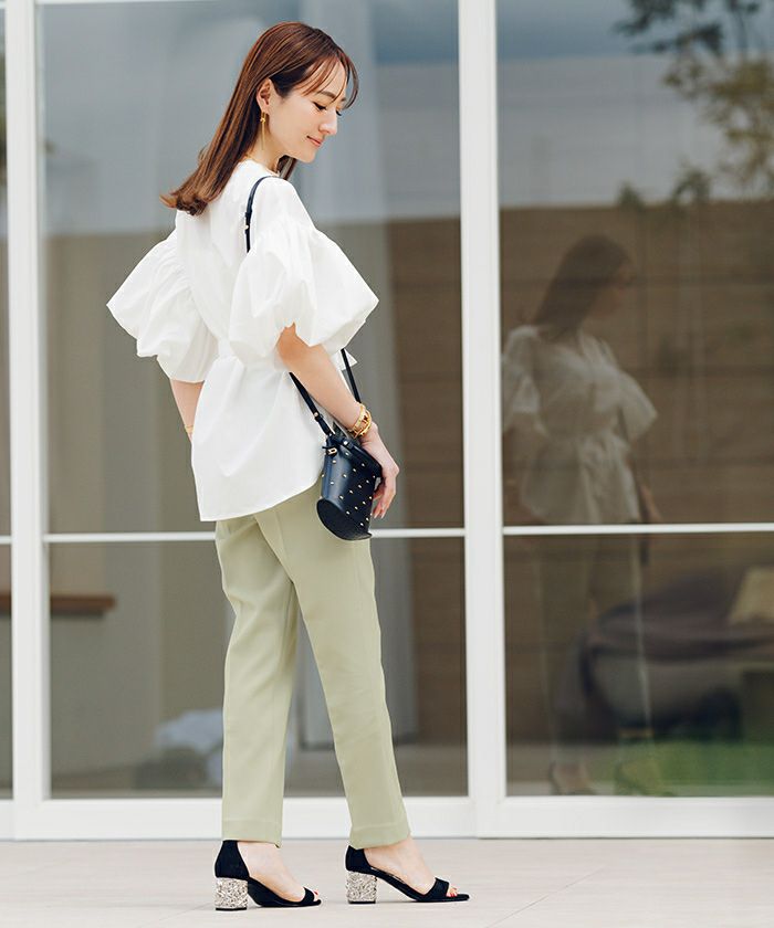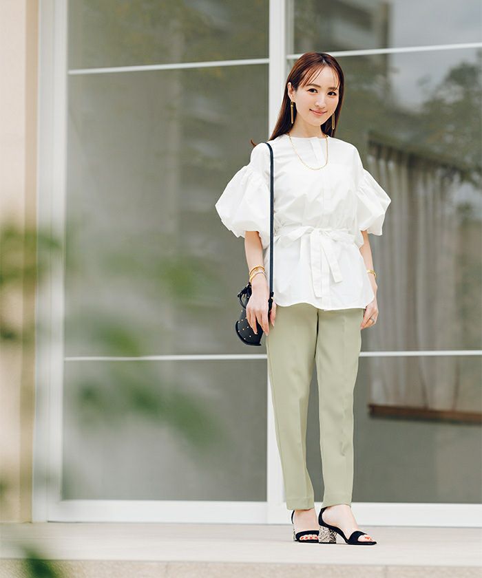シワになりにくく、オフィスでもプライベートでもオシャレに着れてかわいです!