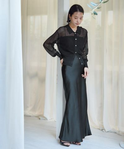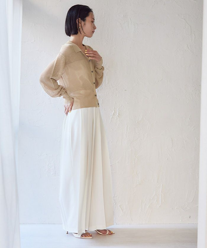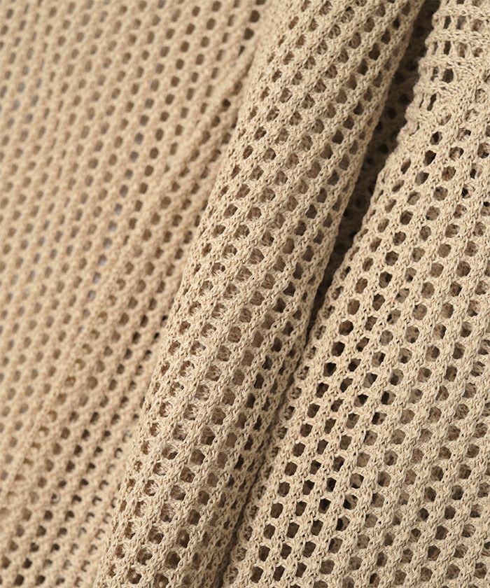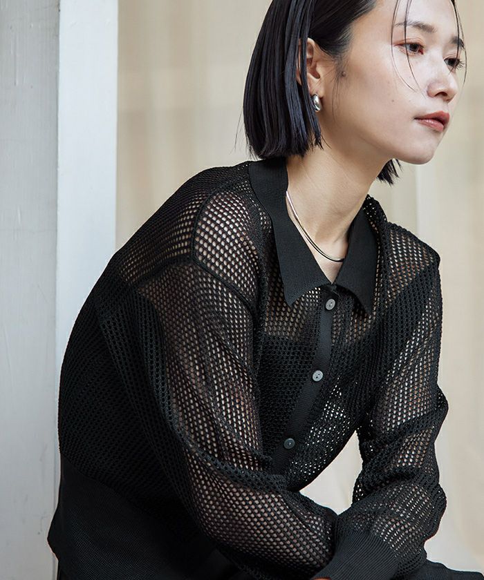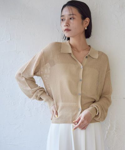 ・カジュアルな印象のメッシュアイテムを襟付きのカーディガンに仕上げて、