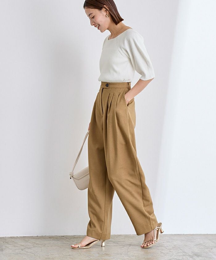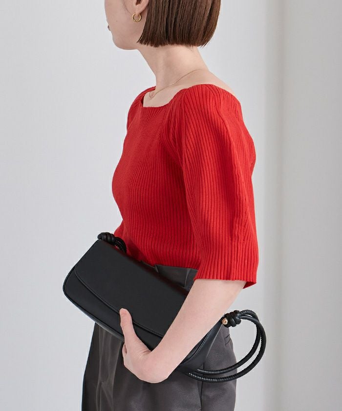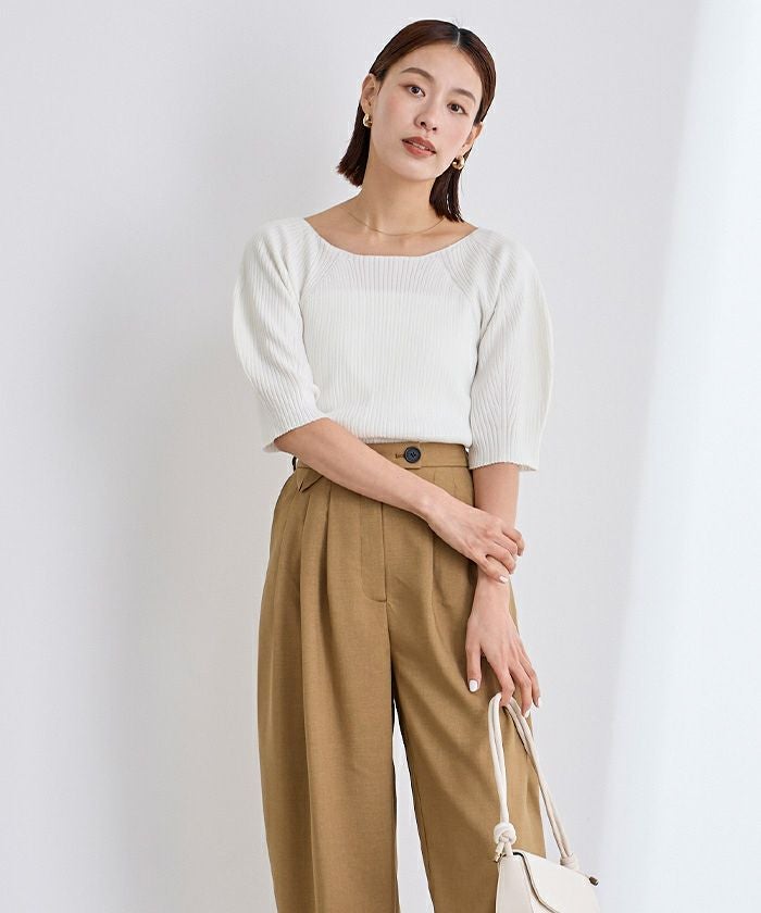 袖の膨らみが大人可愛いリブニット