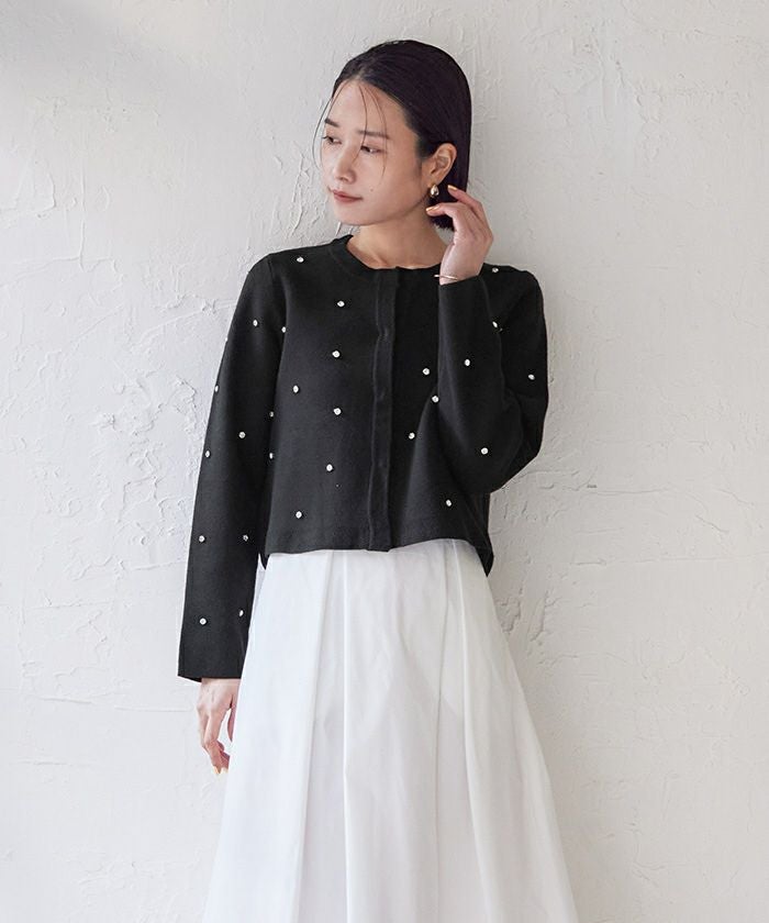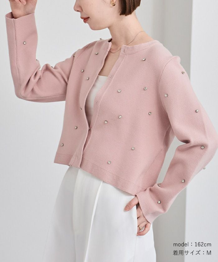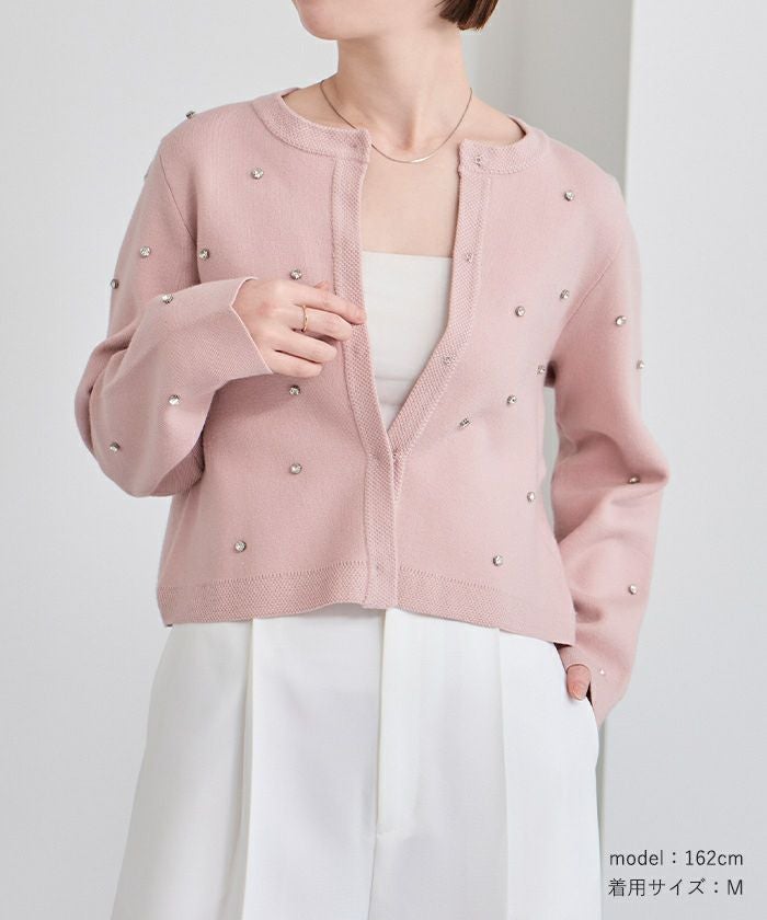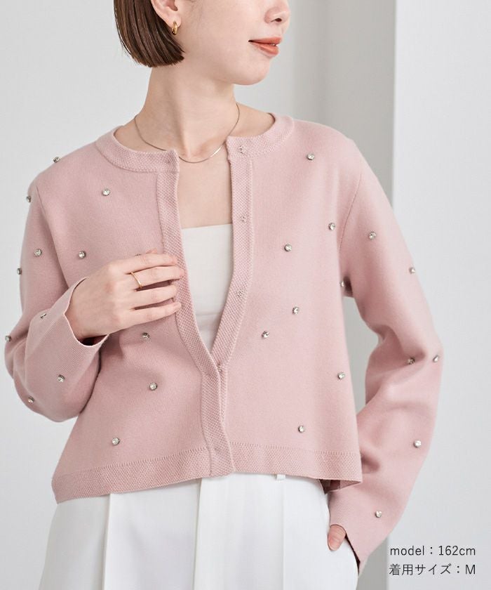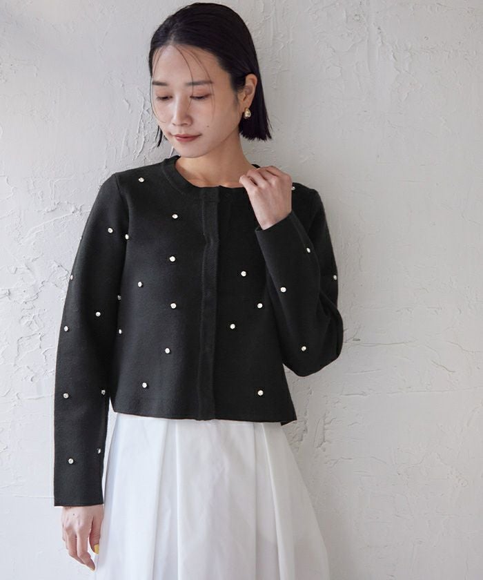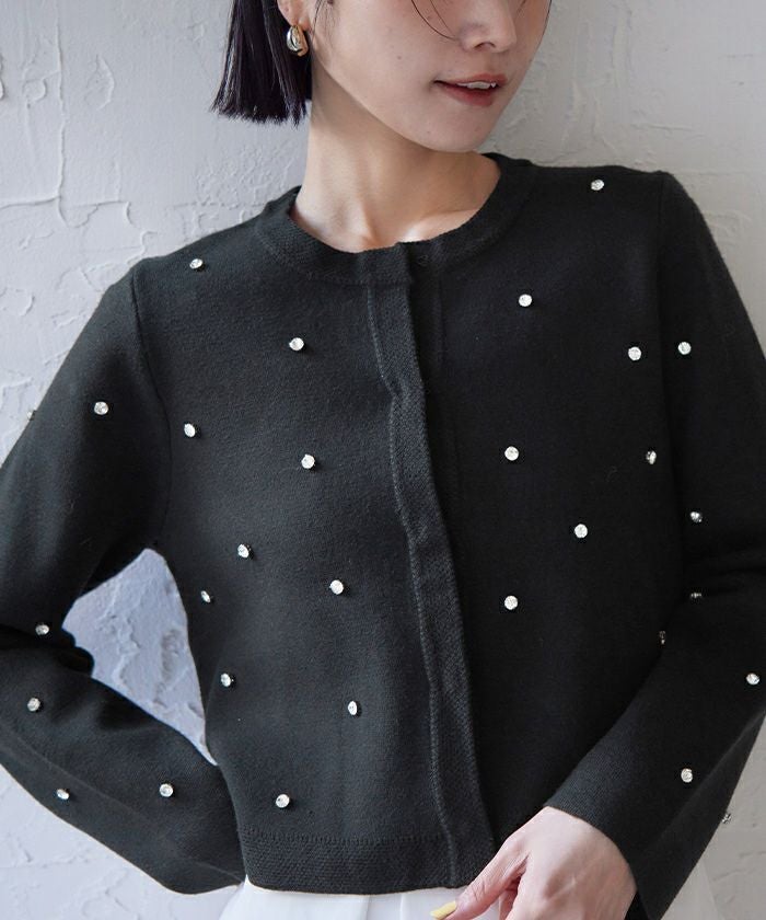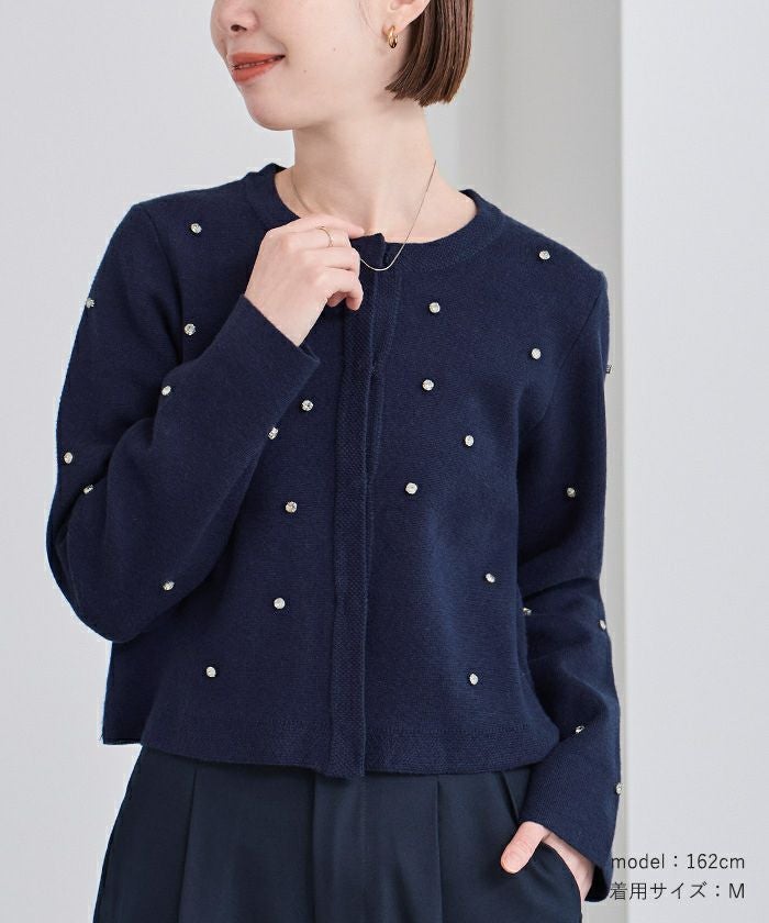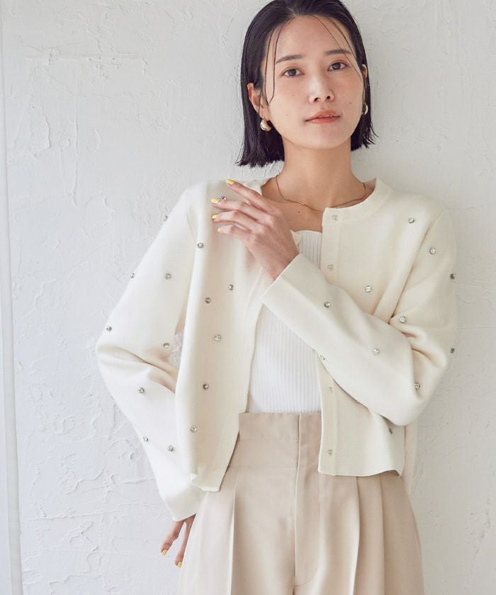 ビジューが特別感あるニットカーディガン