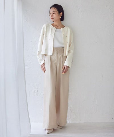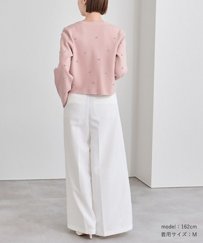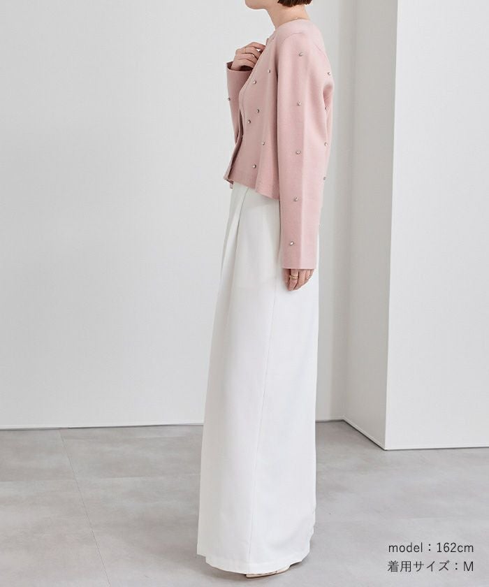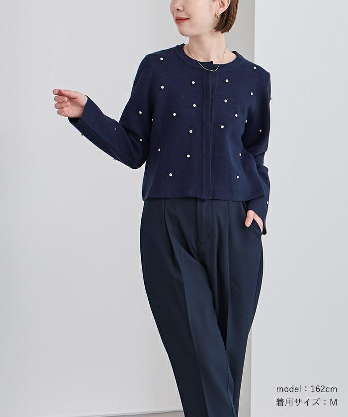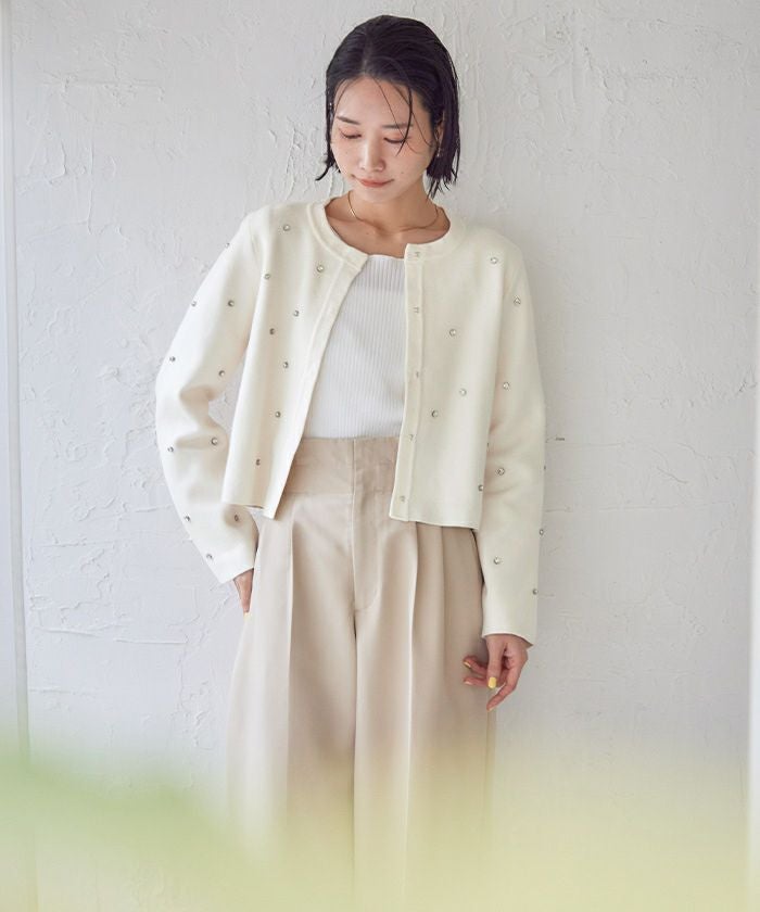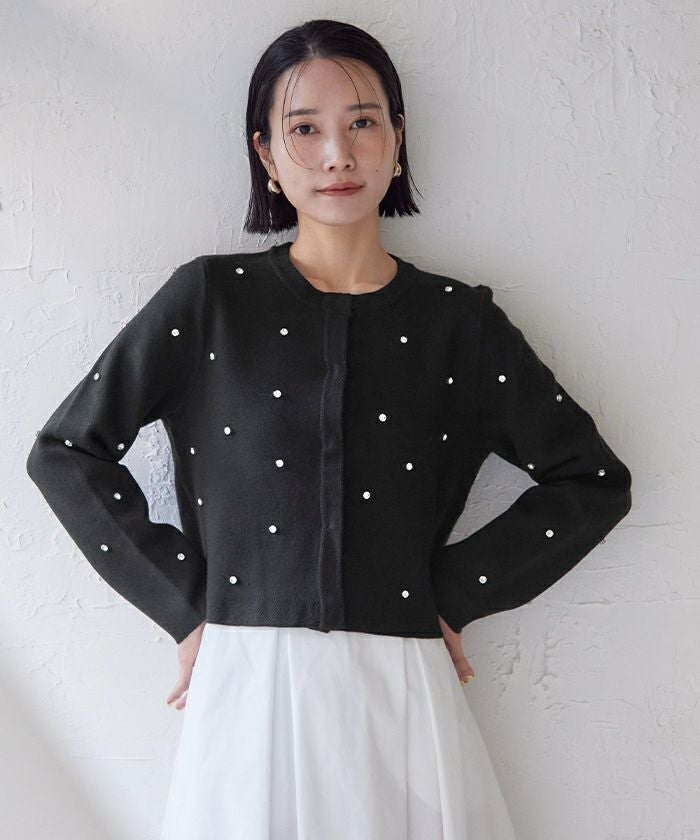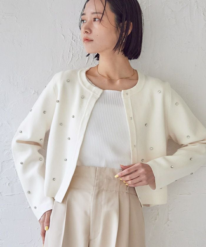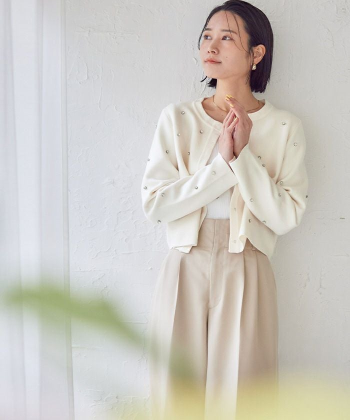ビジューが特別感あるニットカーディガン