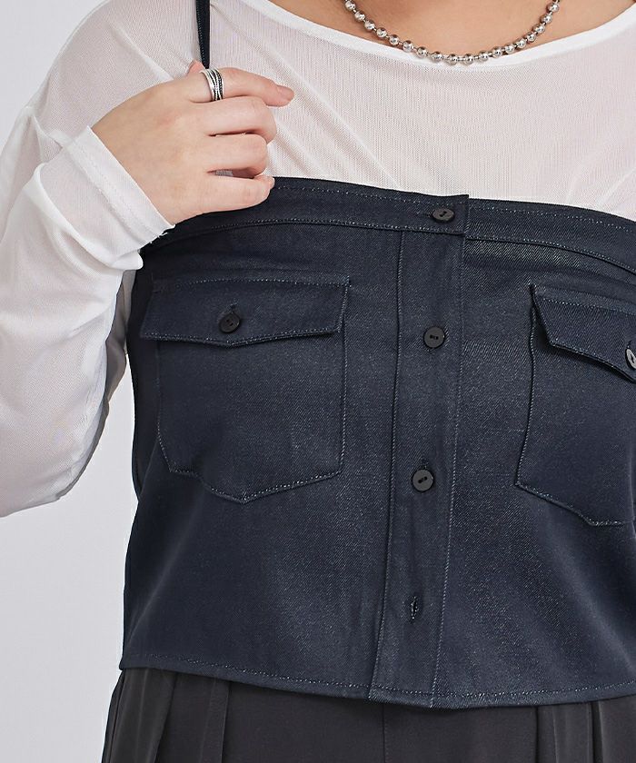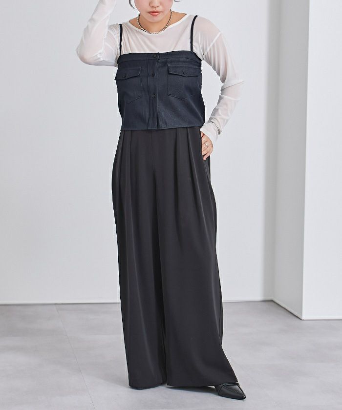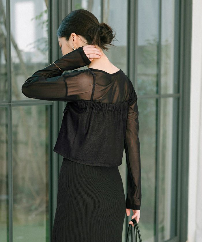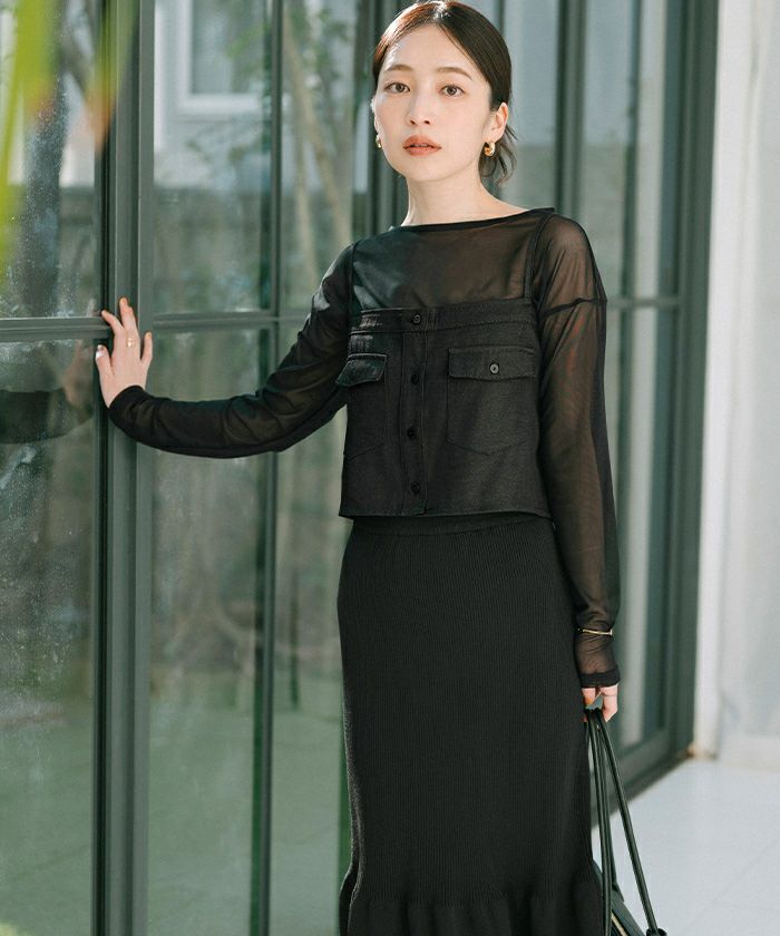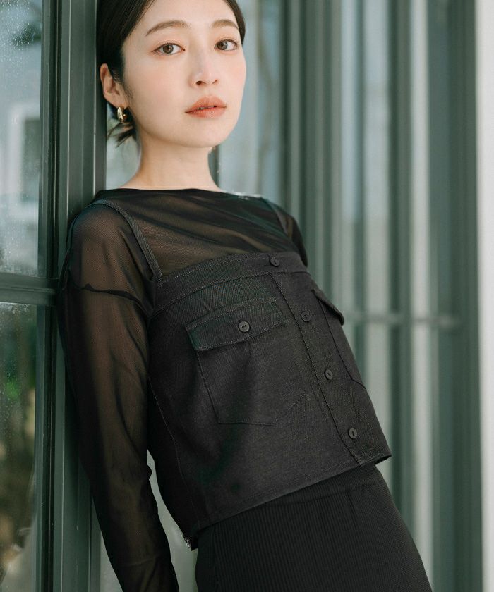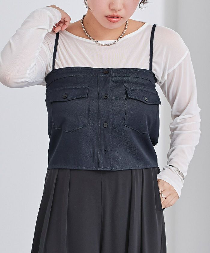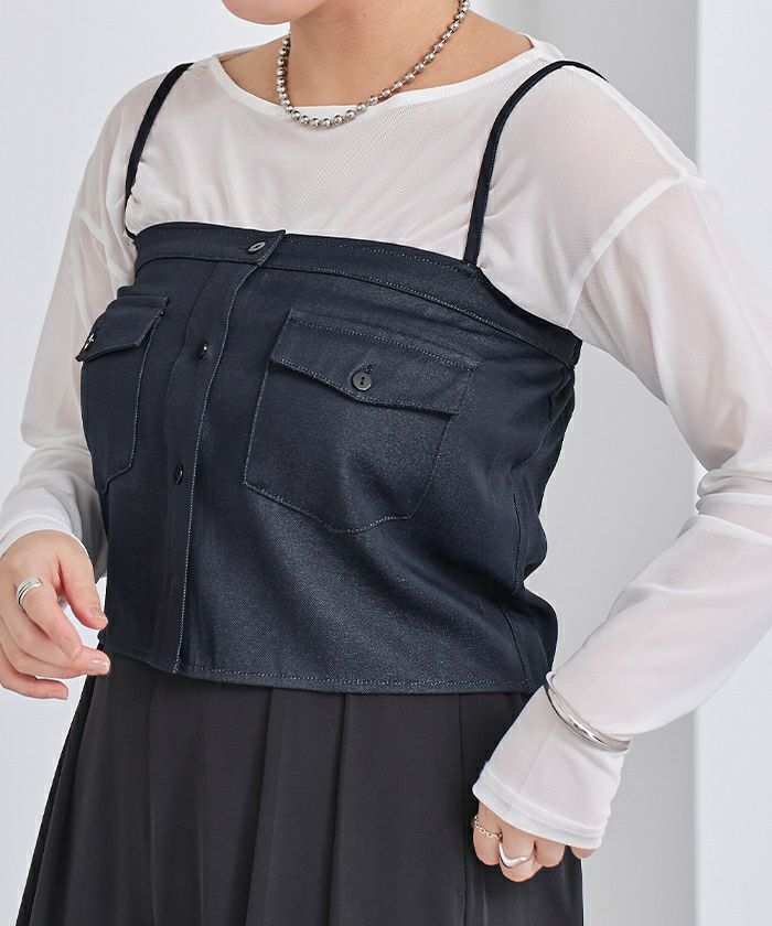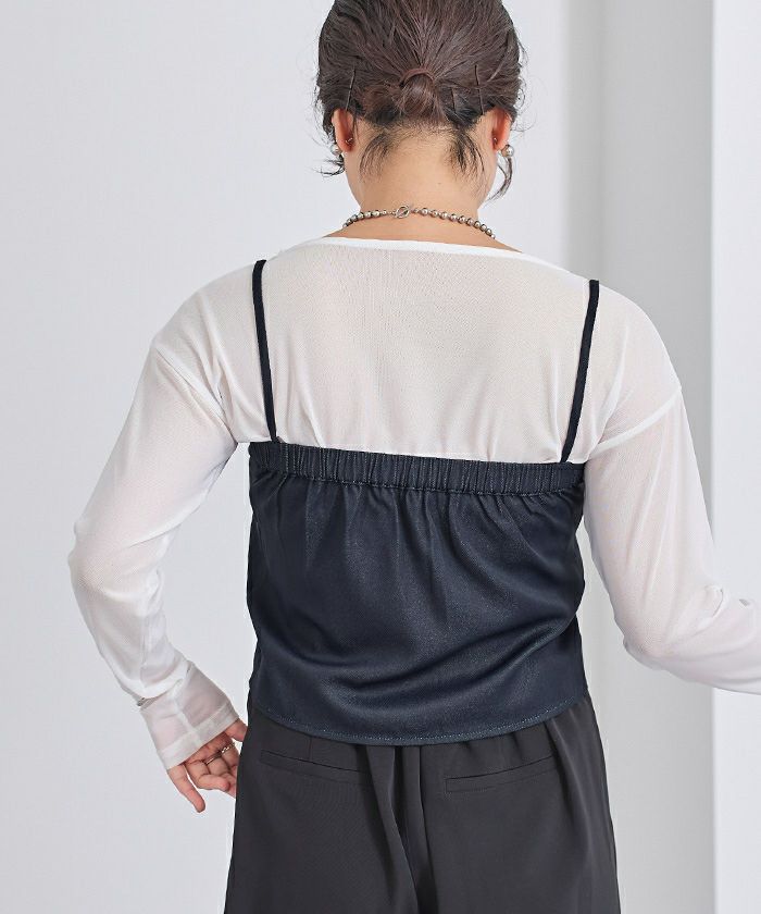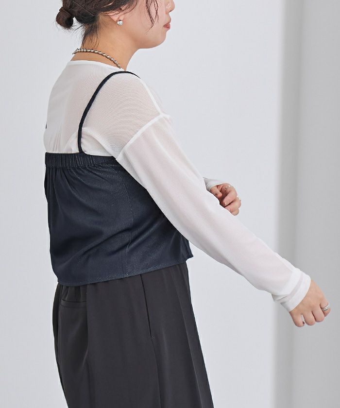 キャミソールで1枚ではもちろん、シアートップスに合わせてビスチェとして着用頂けます。