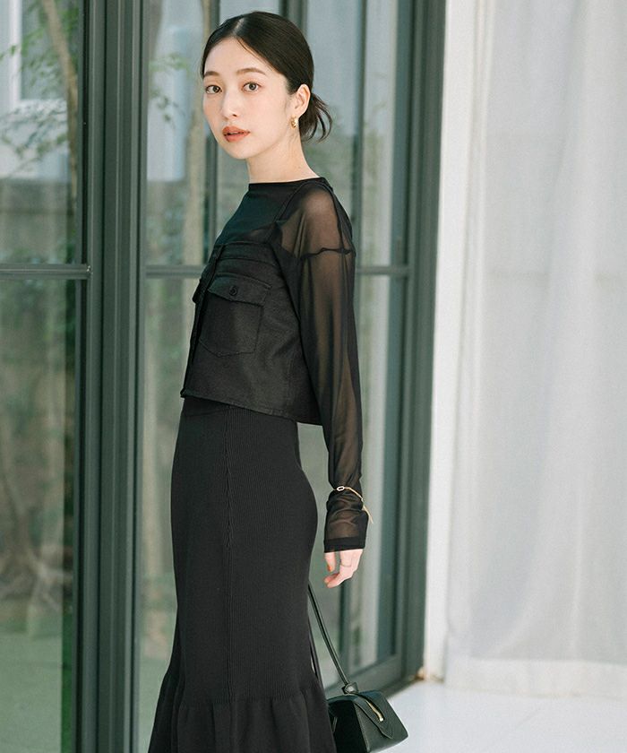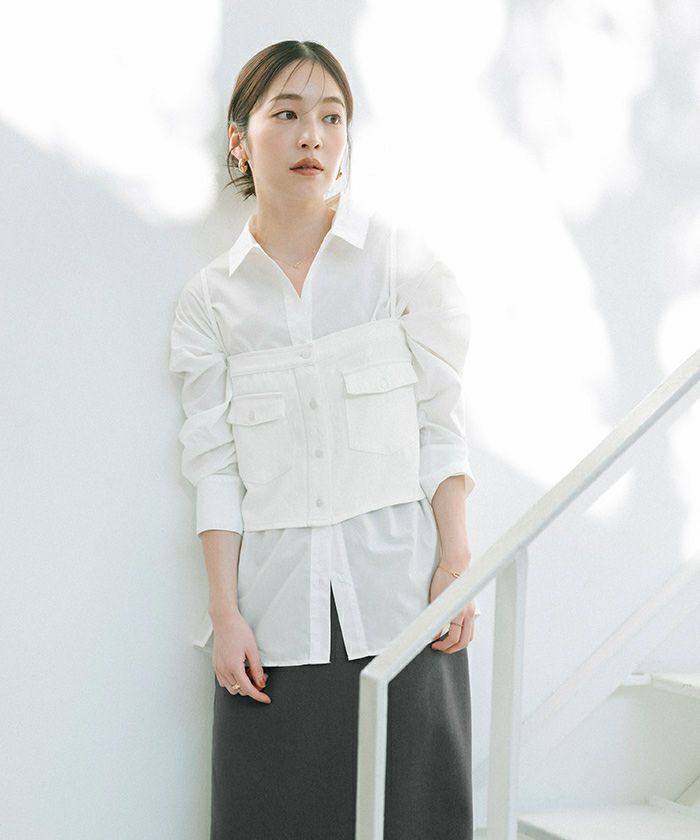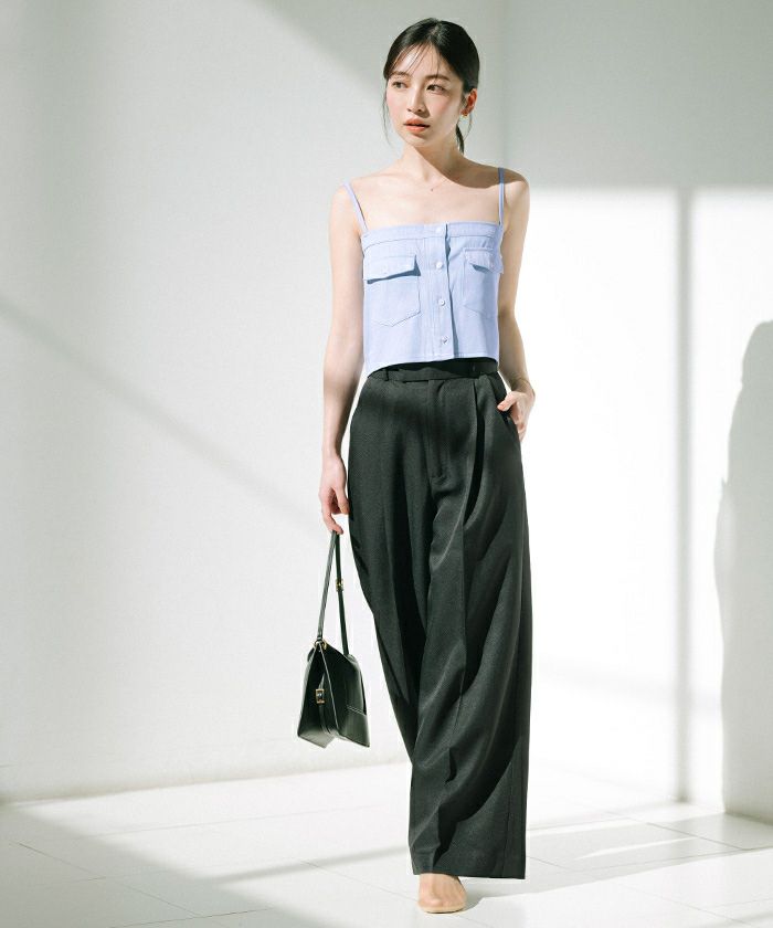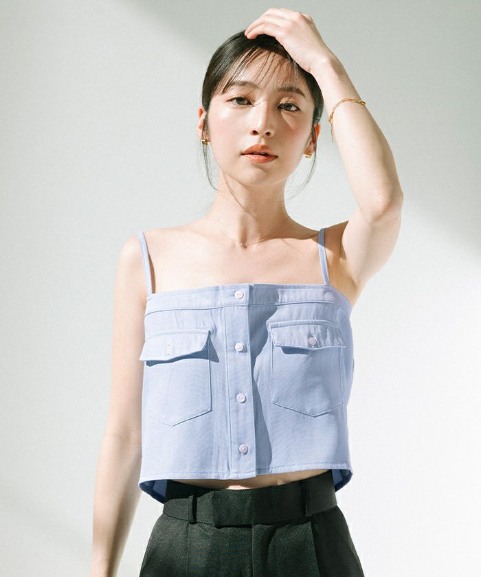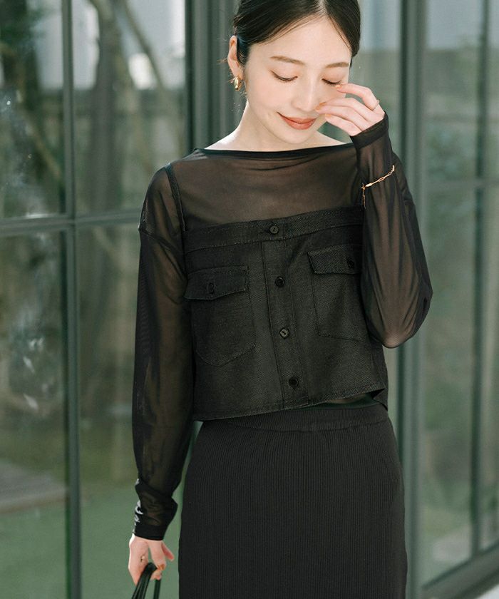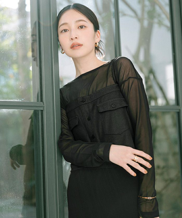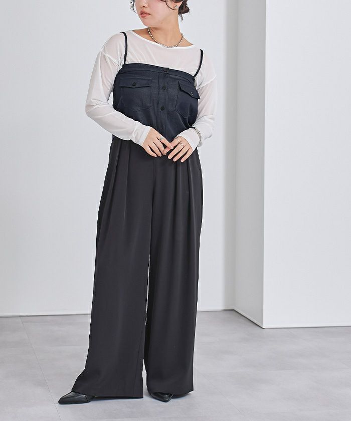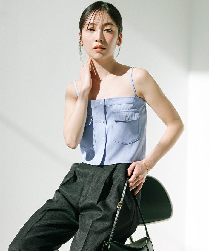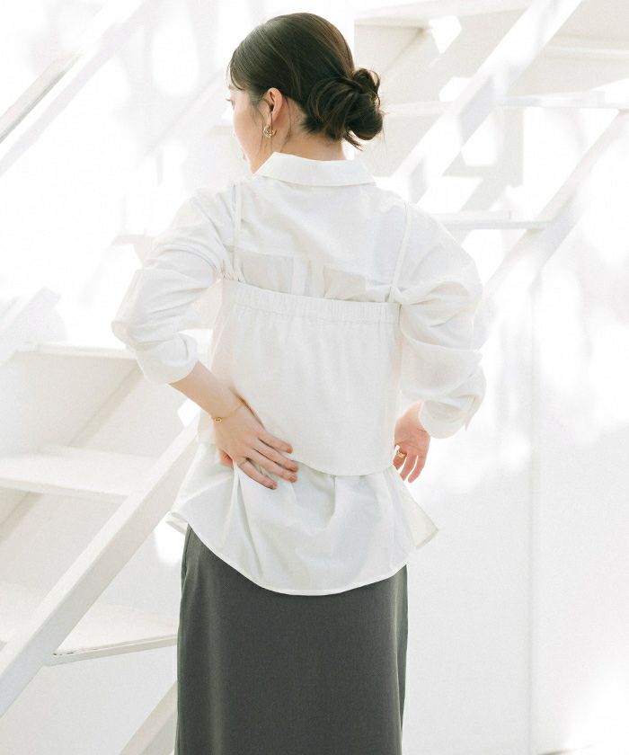 キャミソールで1枚ではもちろん、シアートップスに合わせてビスチェとして着用頂けます。