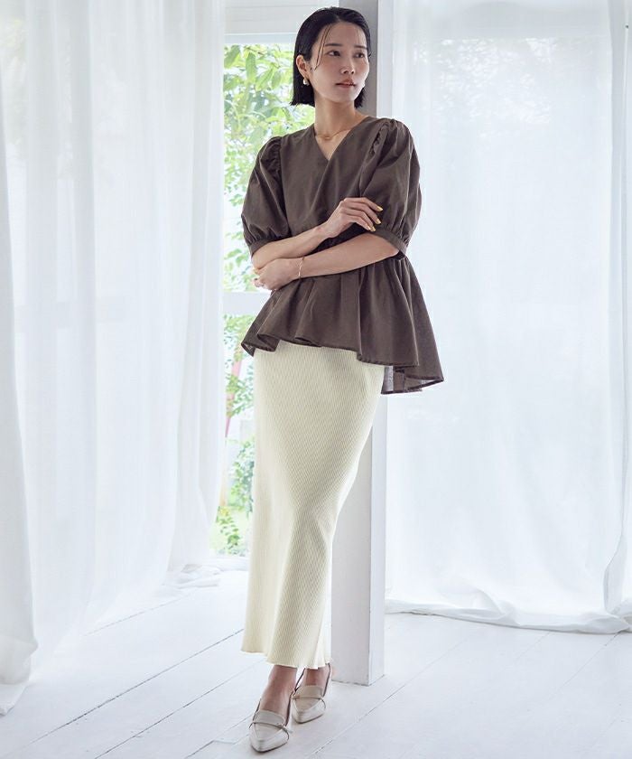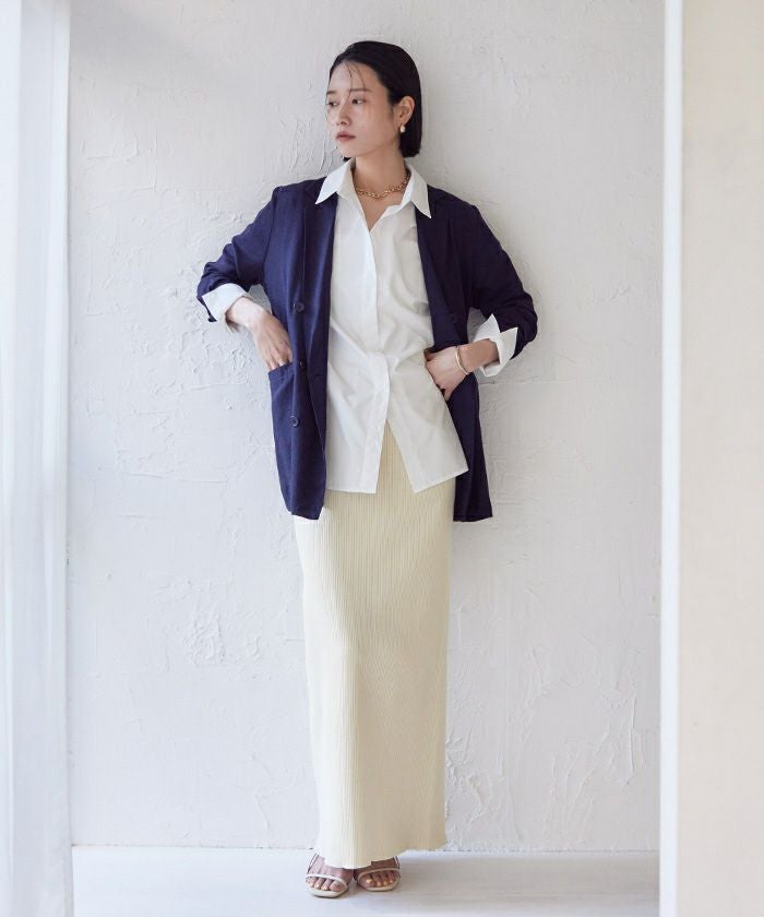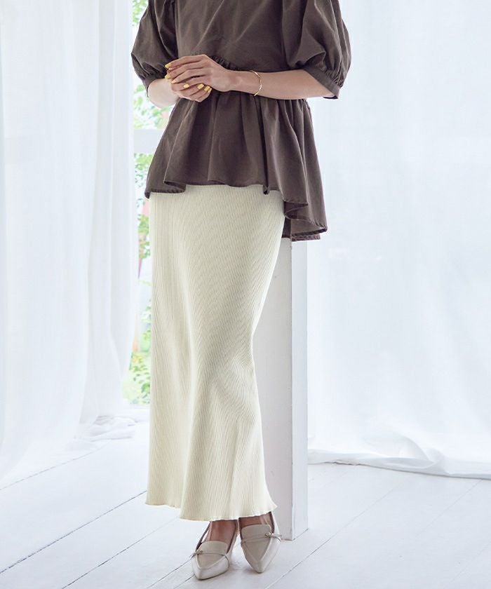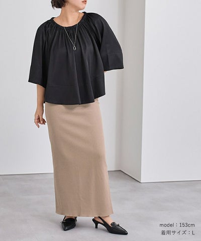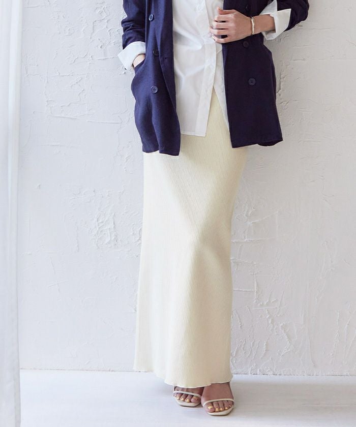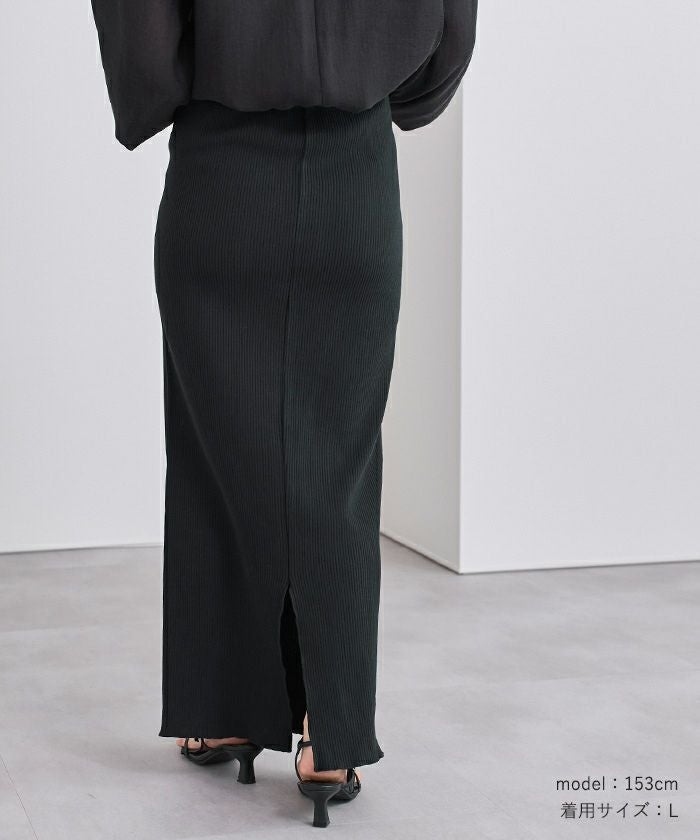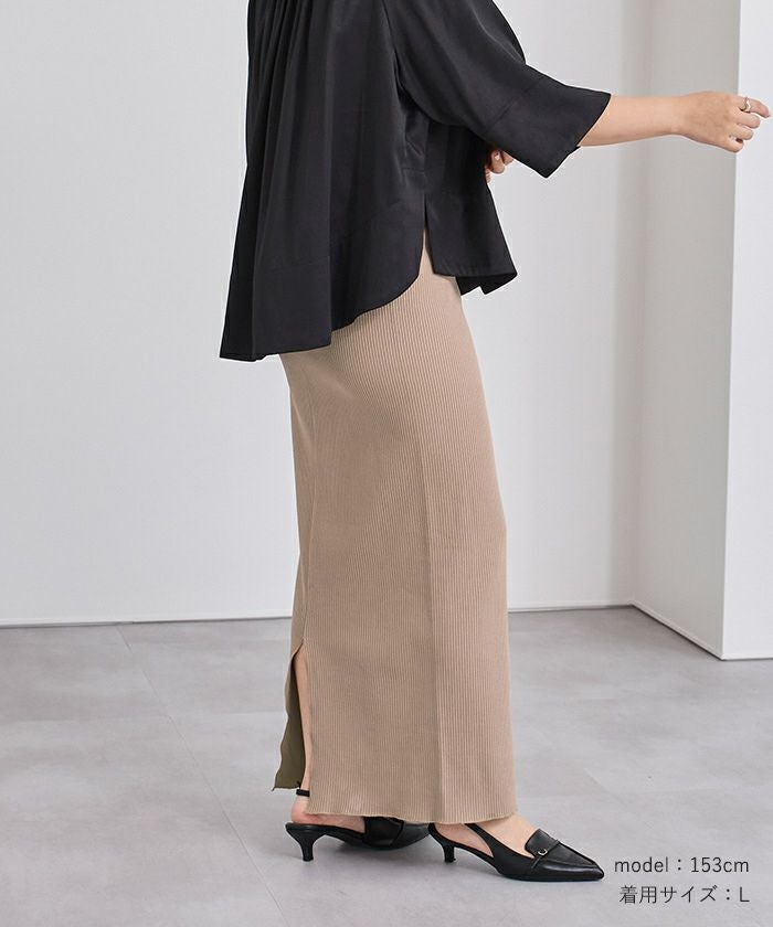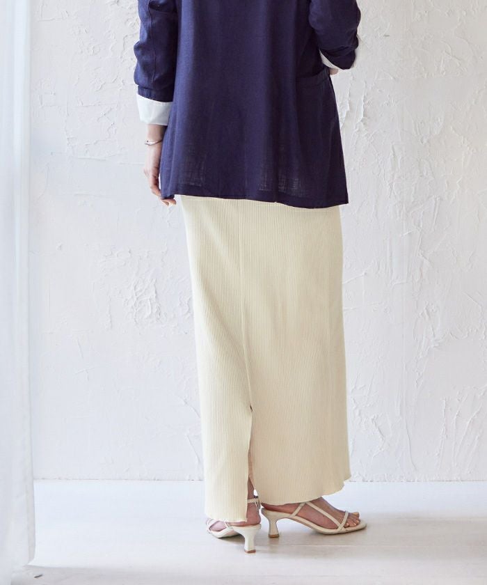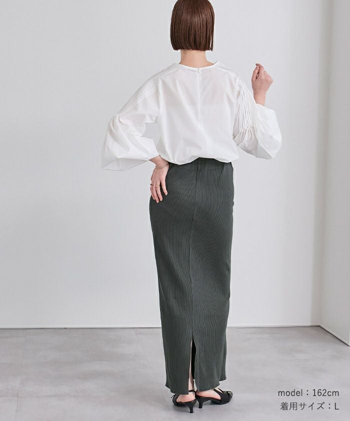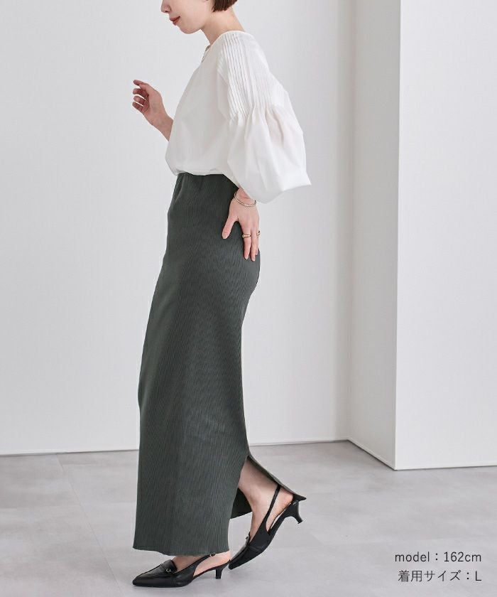 体のラインを拾いすぎないタイトスカートに仕上げました。