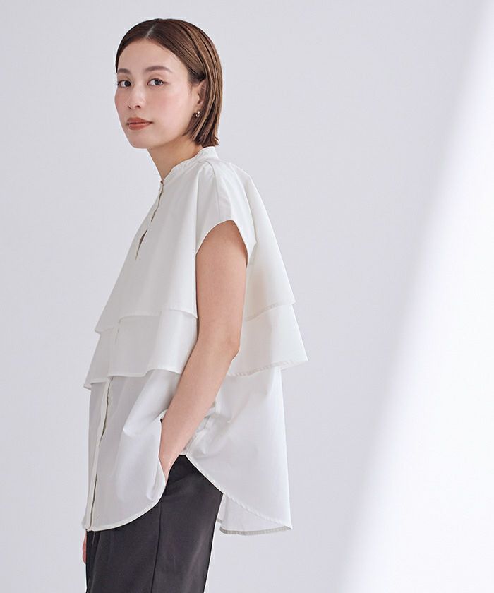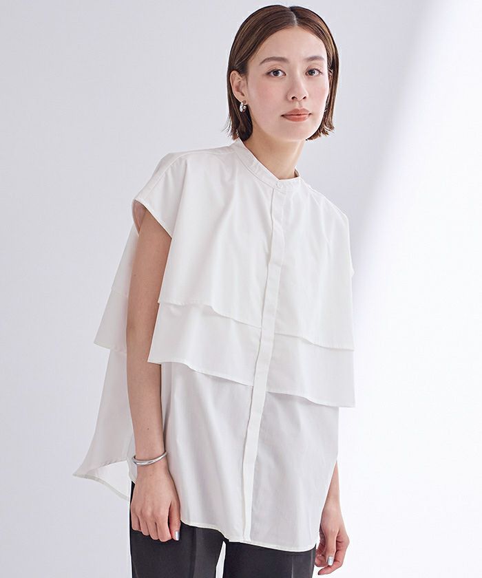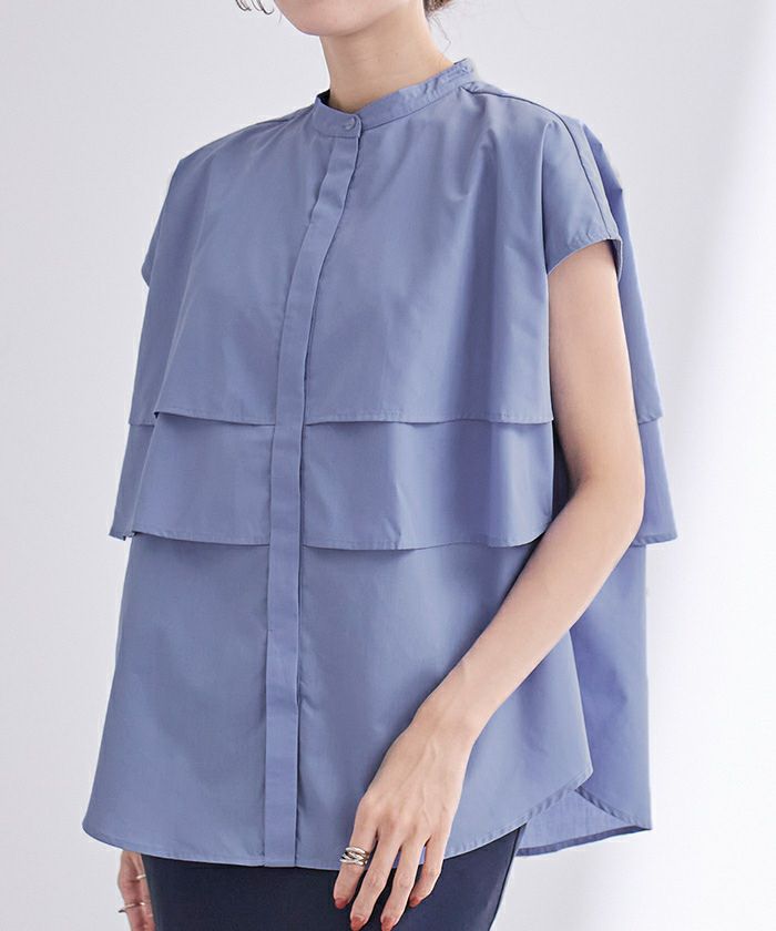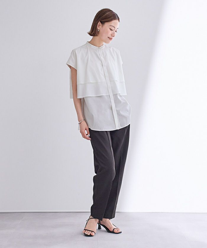 バンドカラーレイヤードデザインシャツ【メール便可/100】