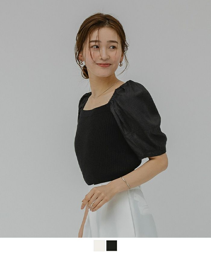 デコルテを美しく見せてくれるスクエアネックで女性らしさが演出されます。
