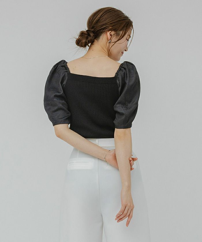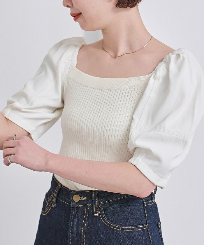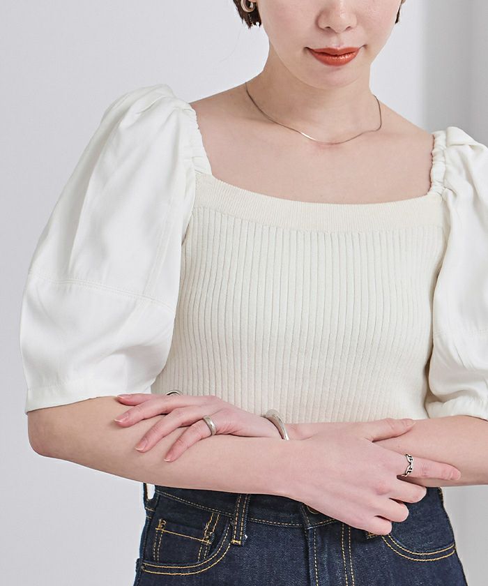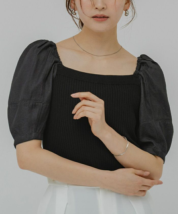 袖はデニムライクの布帛素材でぽわんと膨らんだシルエットに仕上げました。