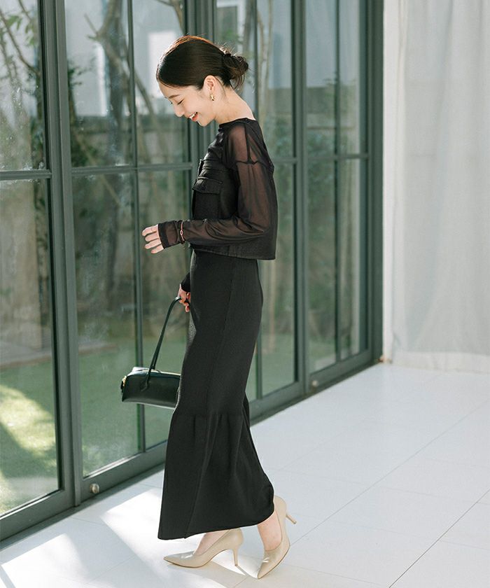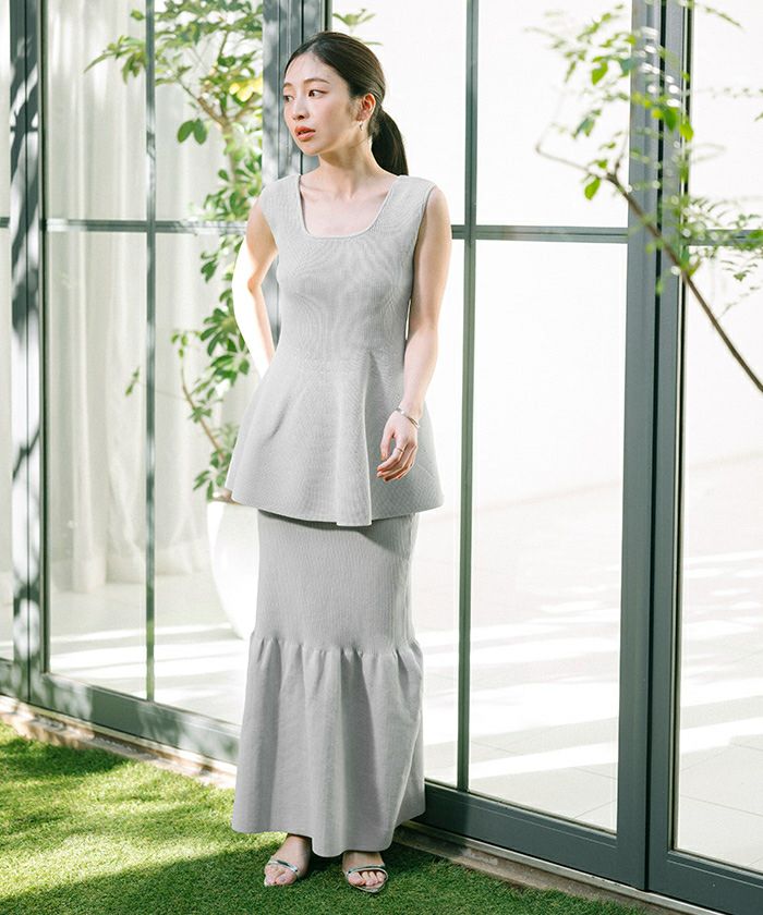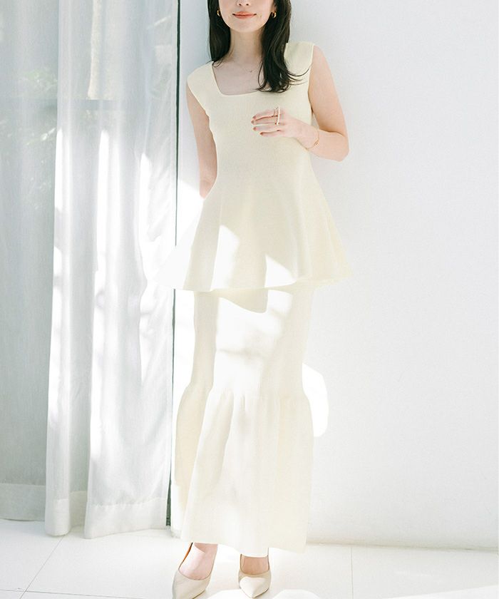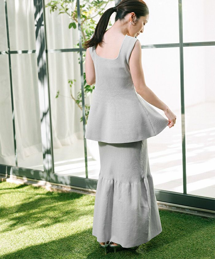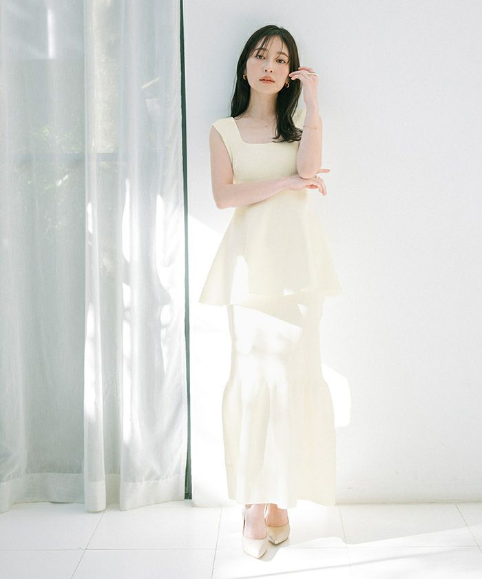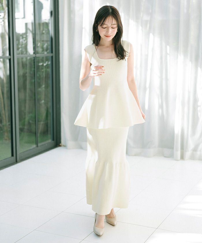 前後2wayスポンディッシュスクエアネックペプラムニット