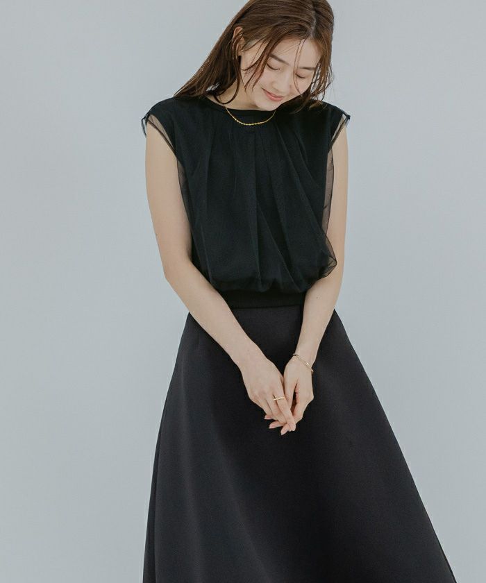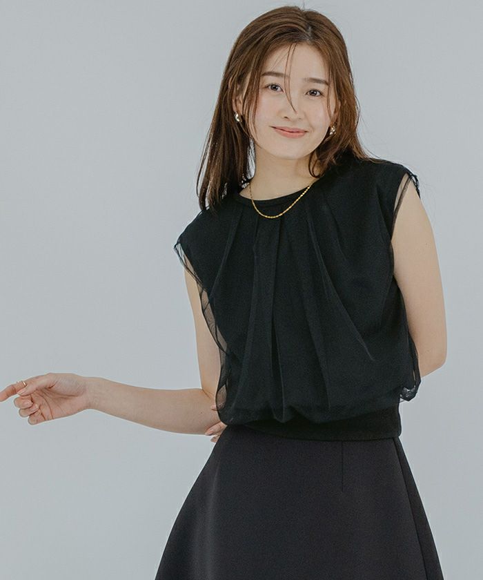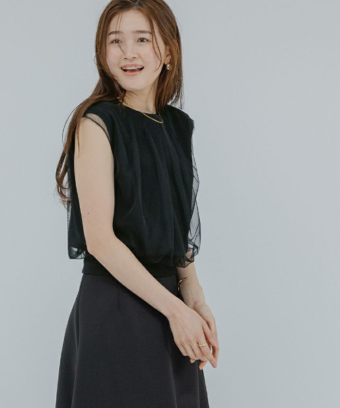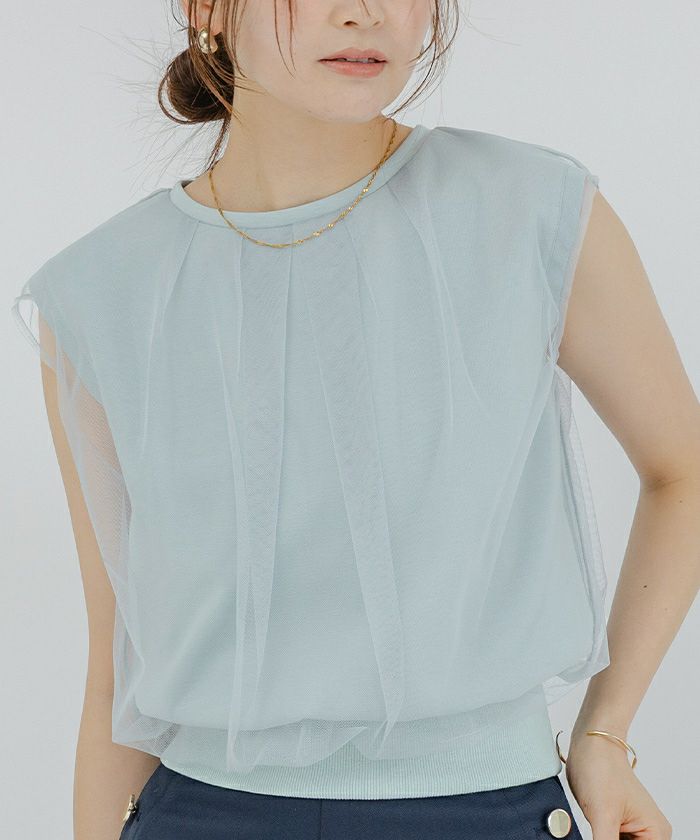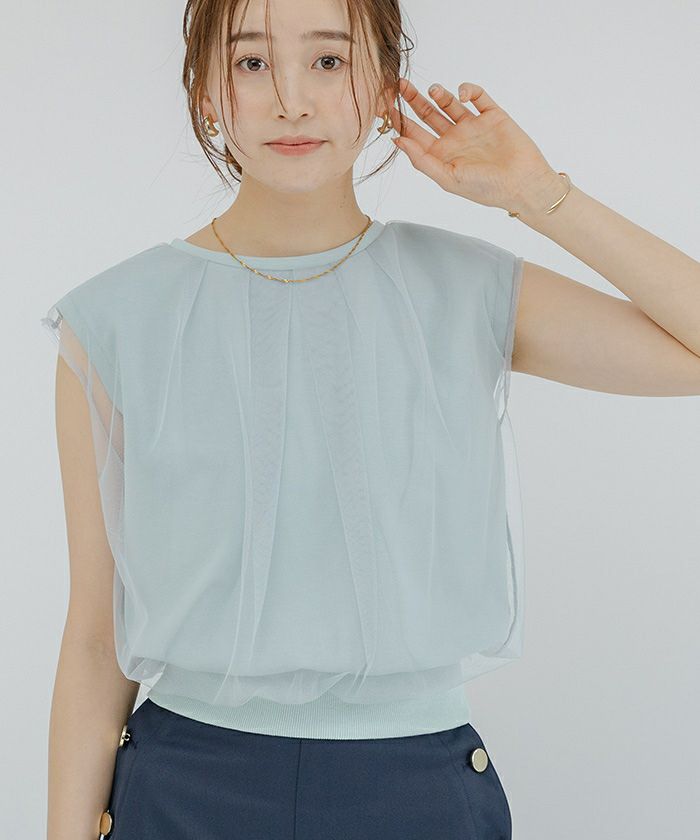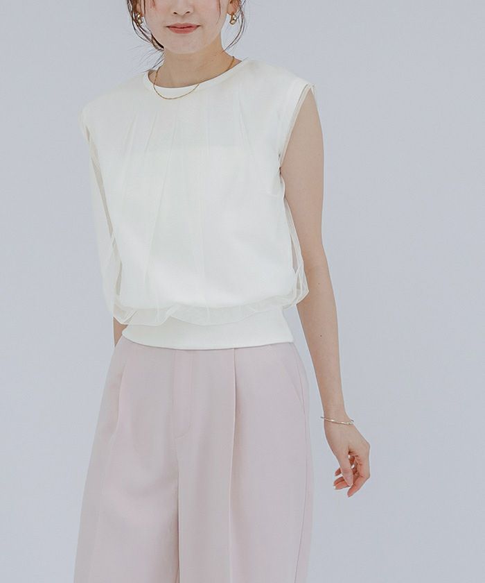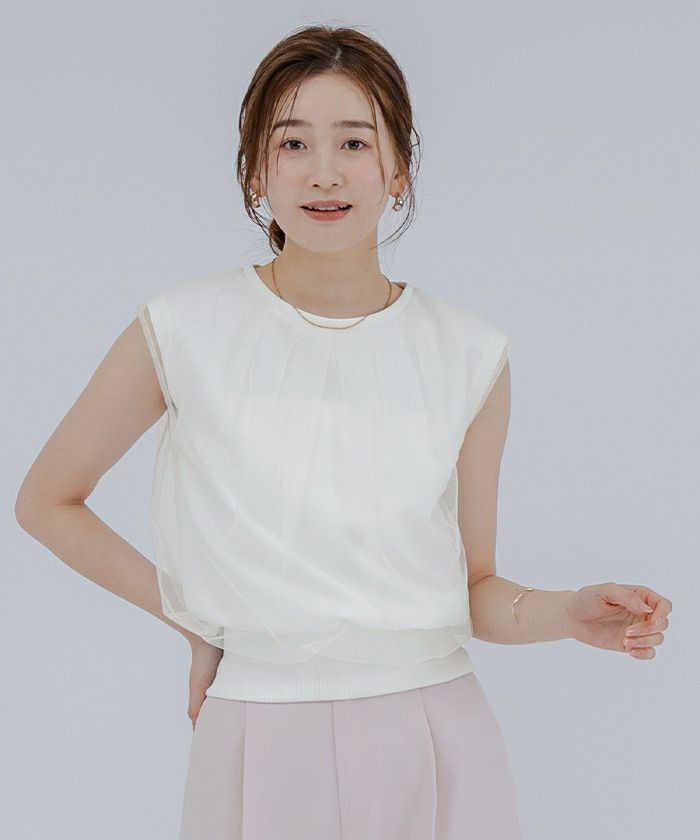 チュールのレイヤードがポイントのカットソー