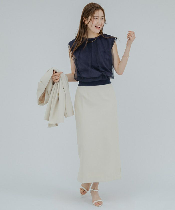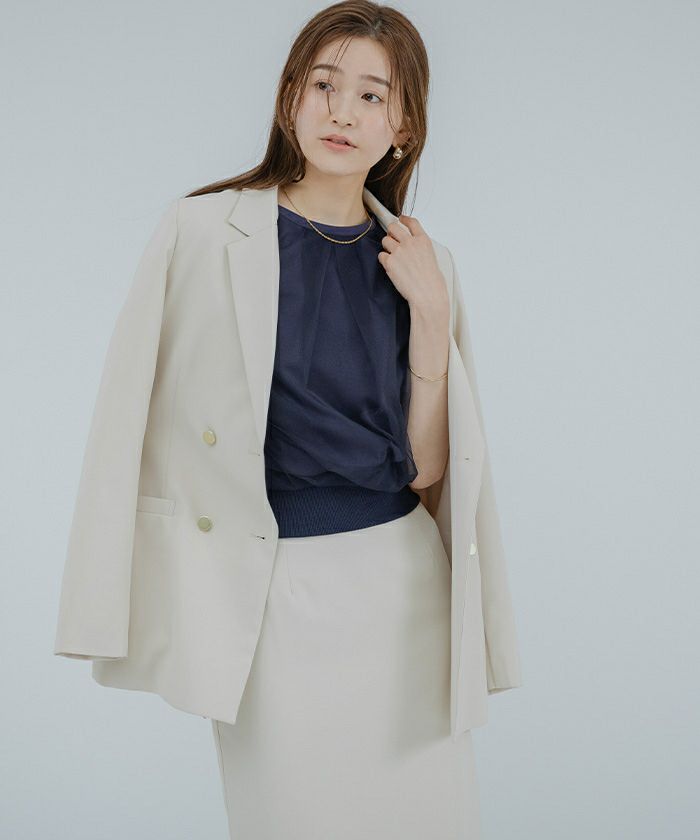 裾はリブのデザインで、腰で止まるので自然にブラウジングができこなれ感のある印象に。