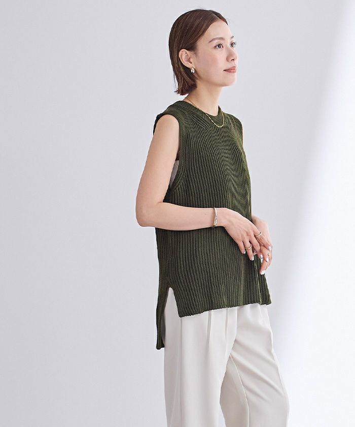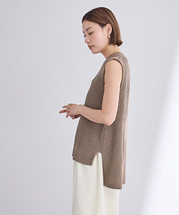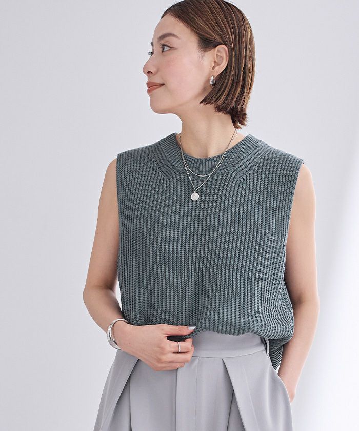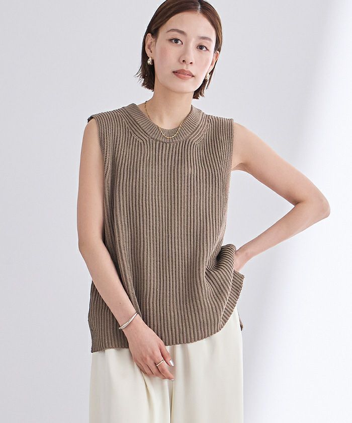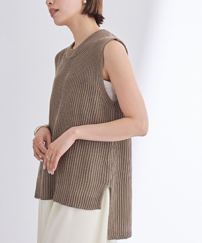 ざっくりとした畦編みのニットベスト。